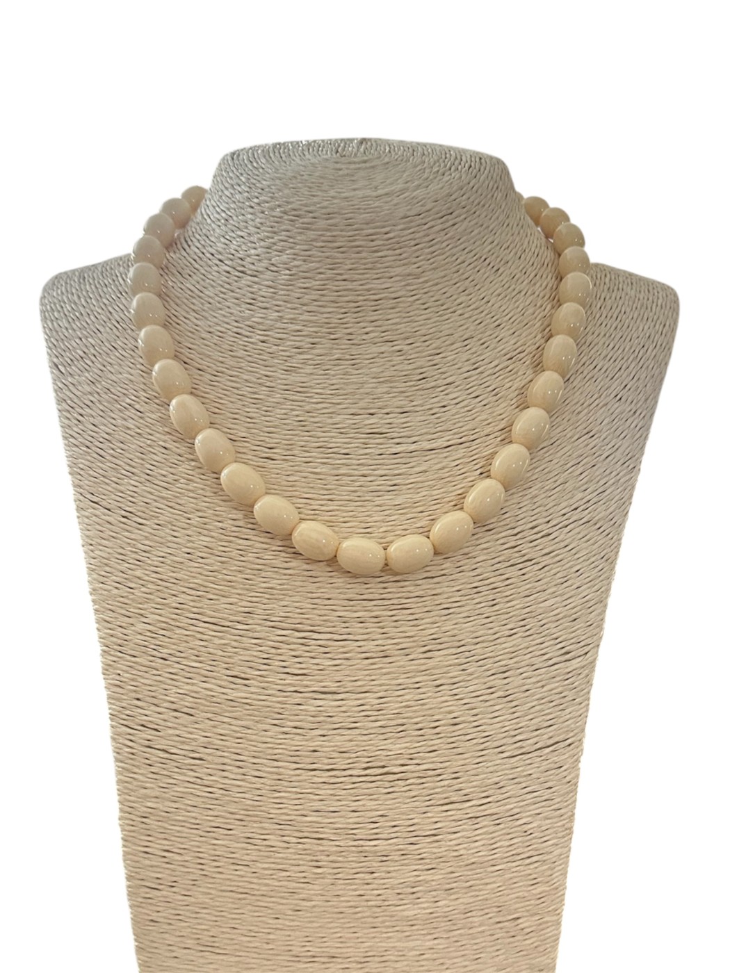 Collar Emilia. Collar caracterizado por sus cuentas de forma ovalada y progresiva en un tono marfil.