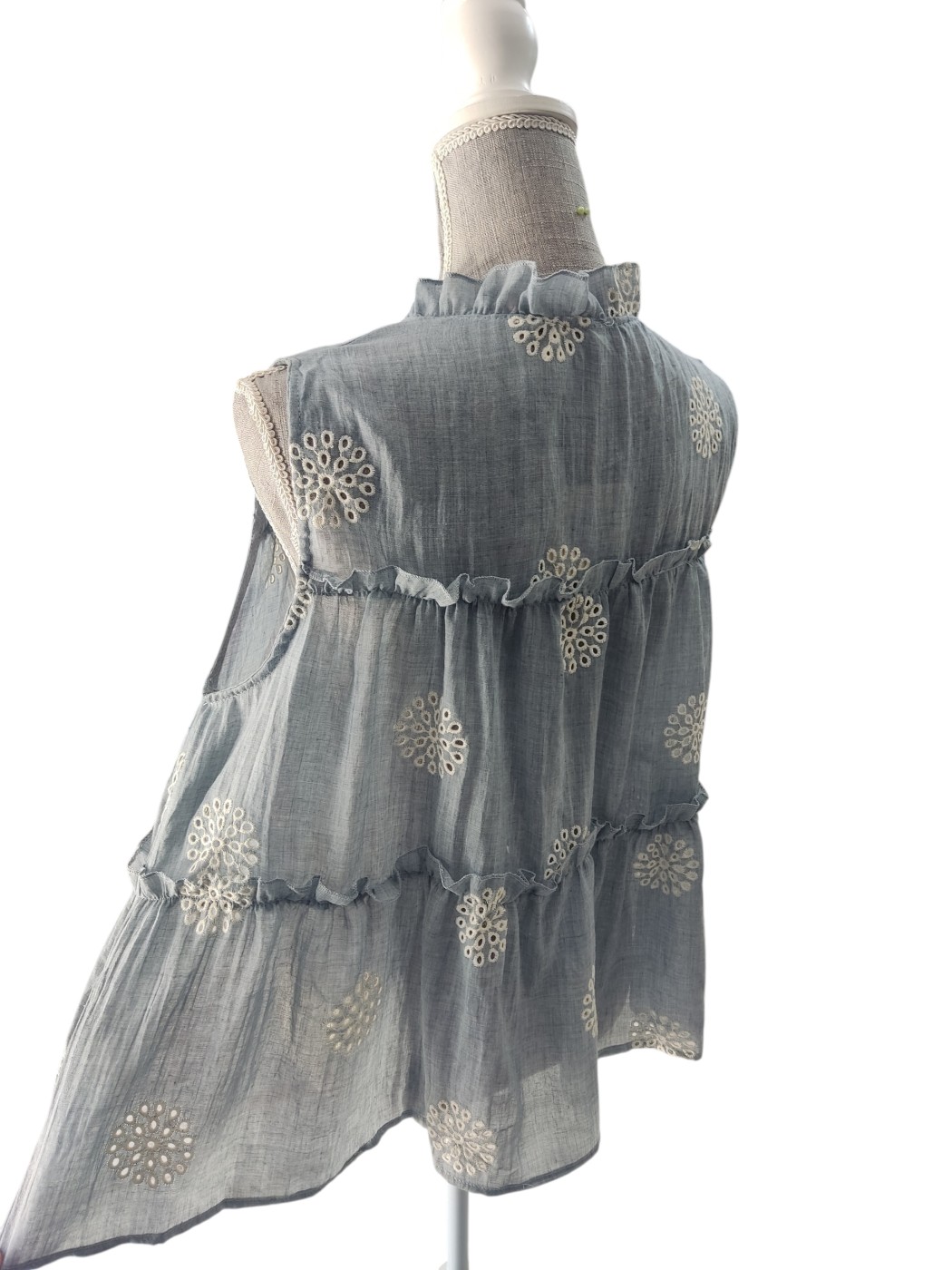 Blusa Alma. Cuenta con manga a la sisa. Bordado brocado en tono blanco roto. Blusa con volantitos.