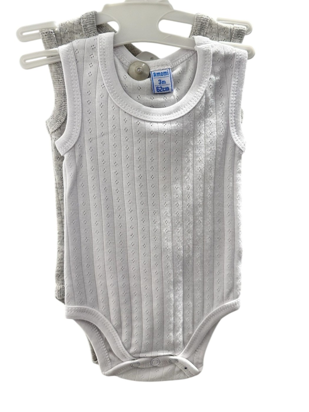 Pack 2 bodys básicos. Pack de dos bodys de algodón para bebé, uno blanco y otro gris. Suaves y cómodos para la delicada piel de tu pequeño.