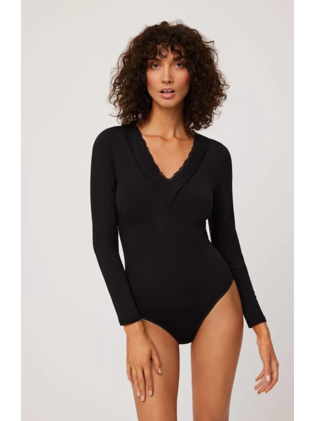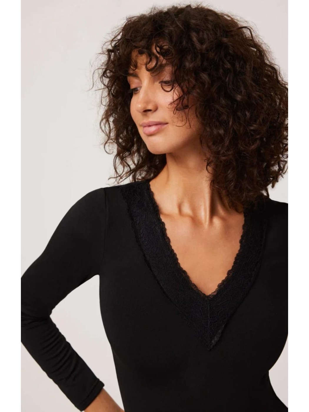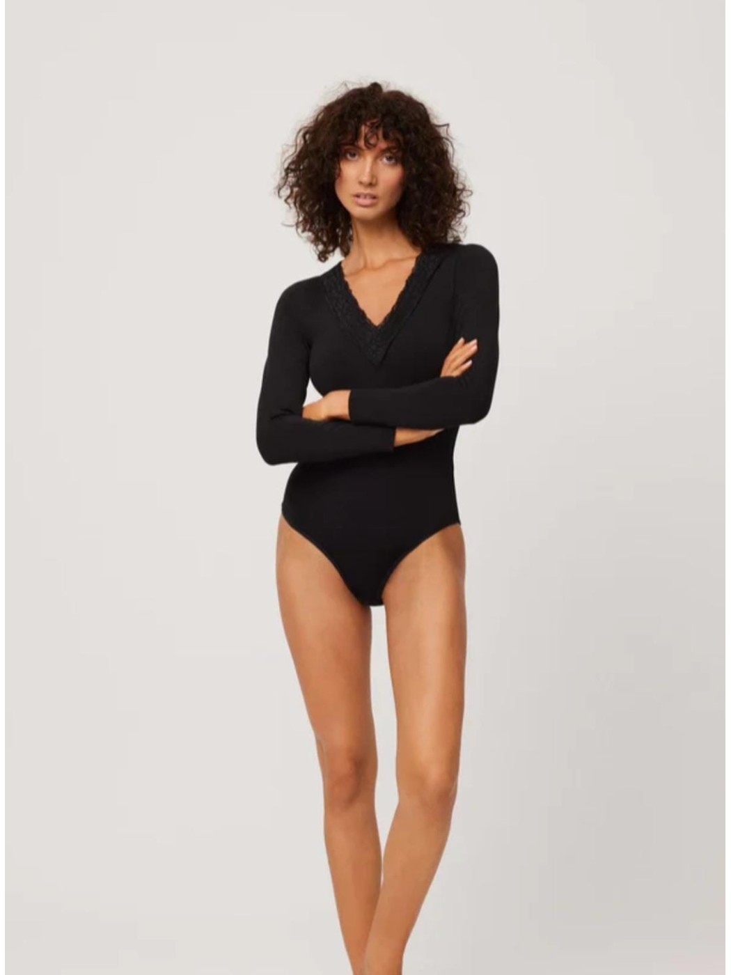 Trajes de Flamenca Mantones de Flamenca Pendientes de Flamenca Flores de Flamenca Broches de Flamenca Peinetas FlamencasBODY TERMICO DE YSABEL MORA CON INTERIOR AFELPADO. CUELLO DE PICO CON ENCAJE. CIERRE AJUSTABLE CON CORCHETES EN LA PARTE INFERIOR
