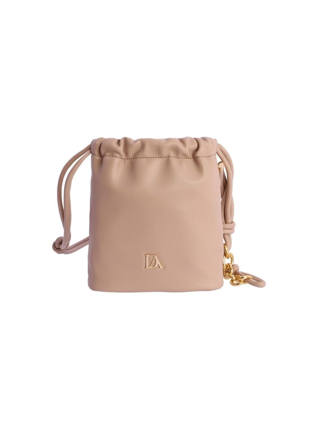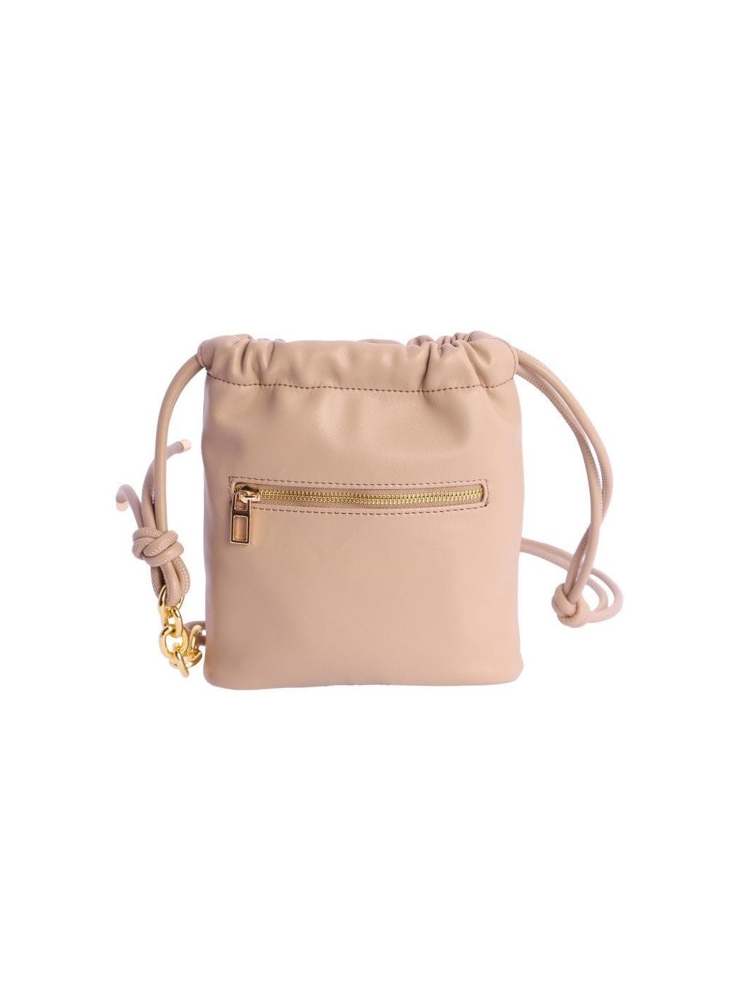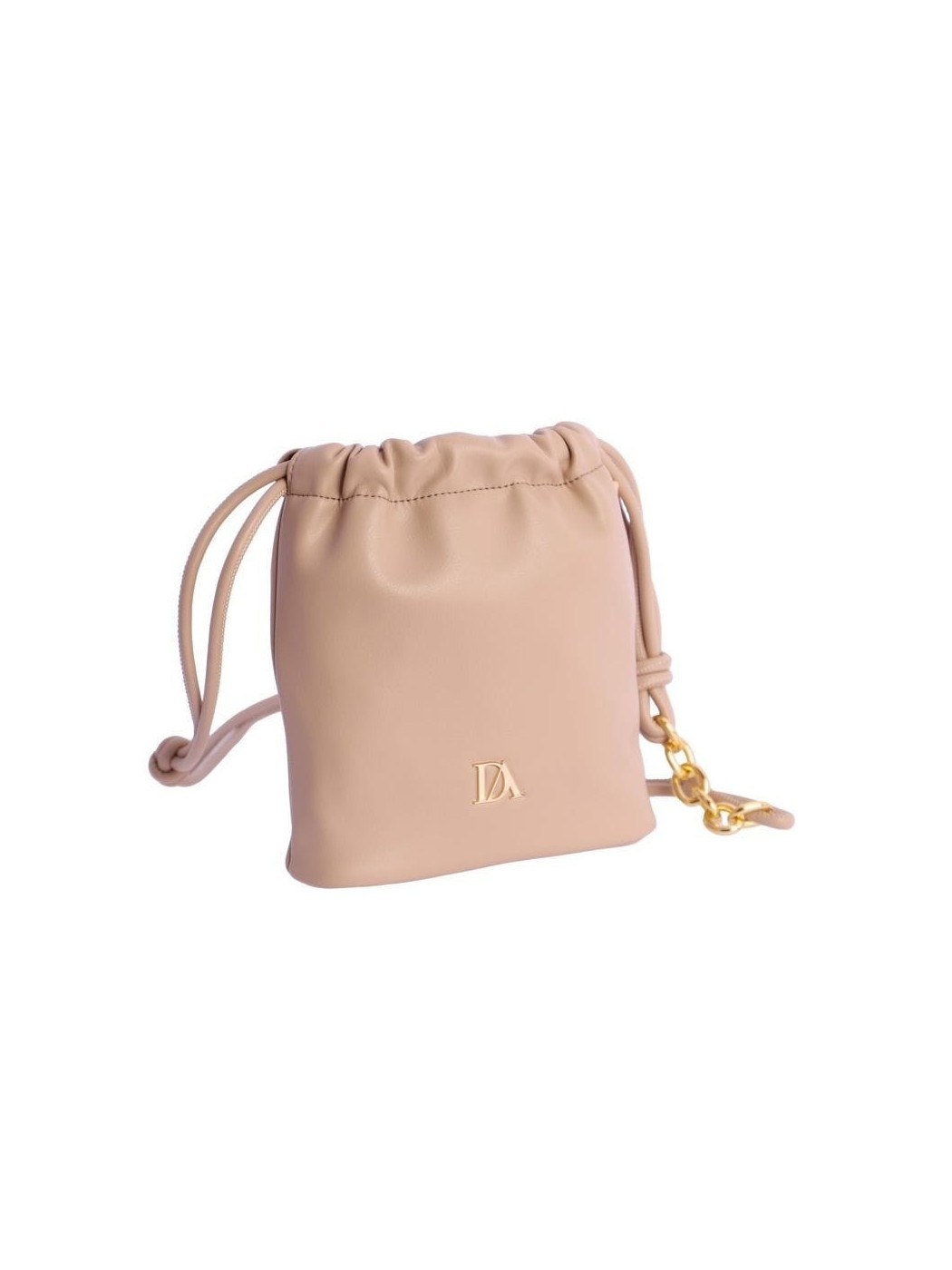 Bandolera mediana Don algodón. Cuenta con cierre fruncido. Bolsillo trasero con cremallera metálica. Asa doble con detalle de eslabones metálicos. Medidas aproximadas: 22x22cm.