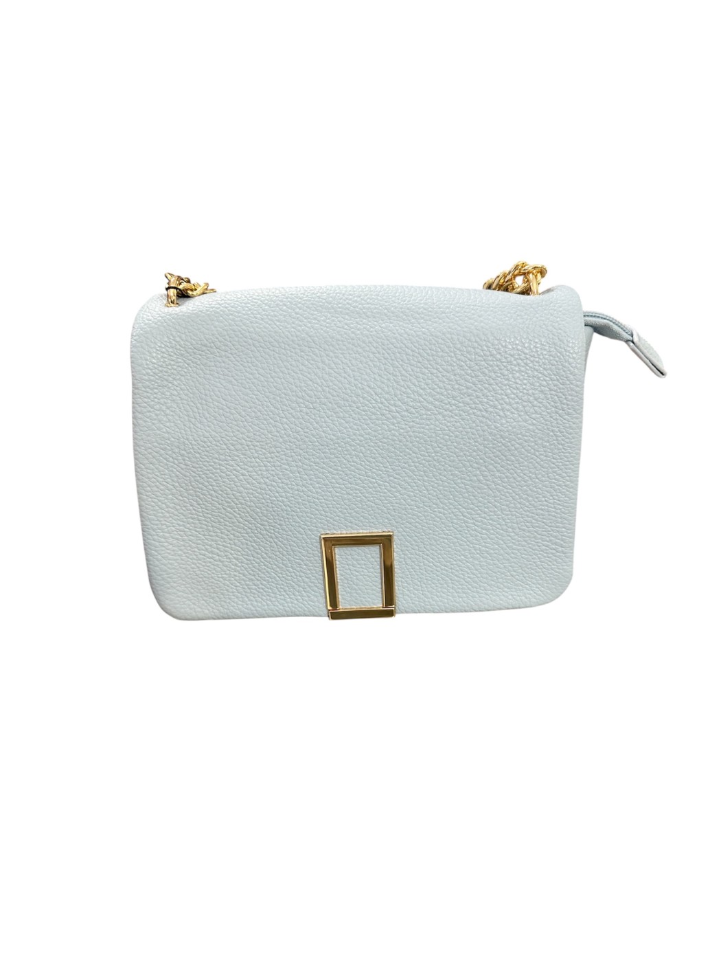 Bolso Miriam. Bolso de estructura rectangular con solapa frontal y una característica hebilla cuadrada metálica en color dorado.