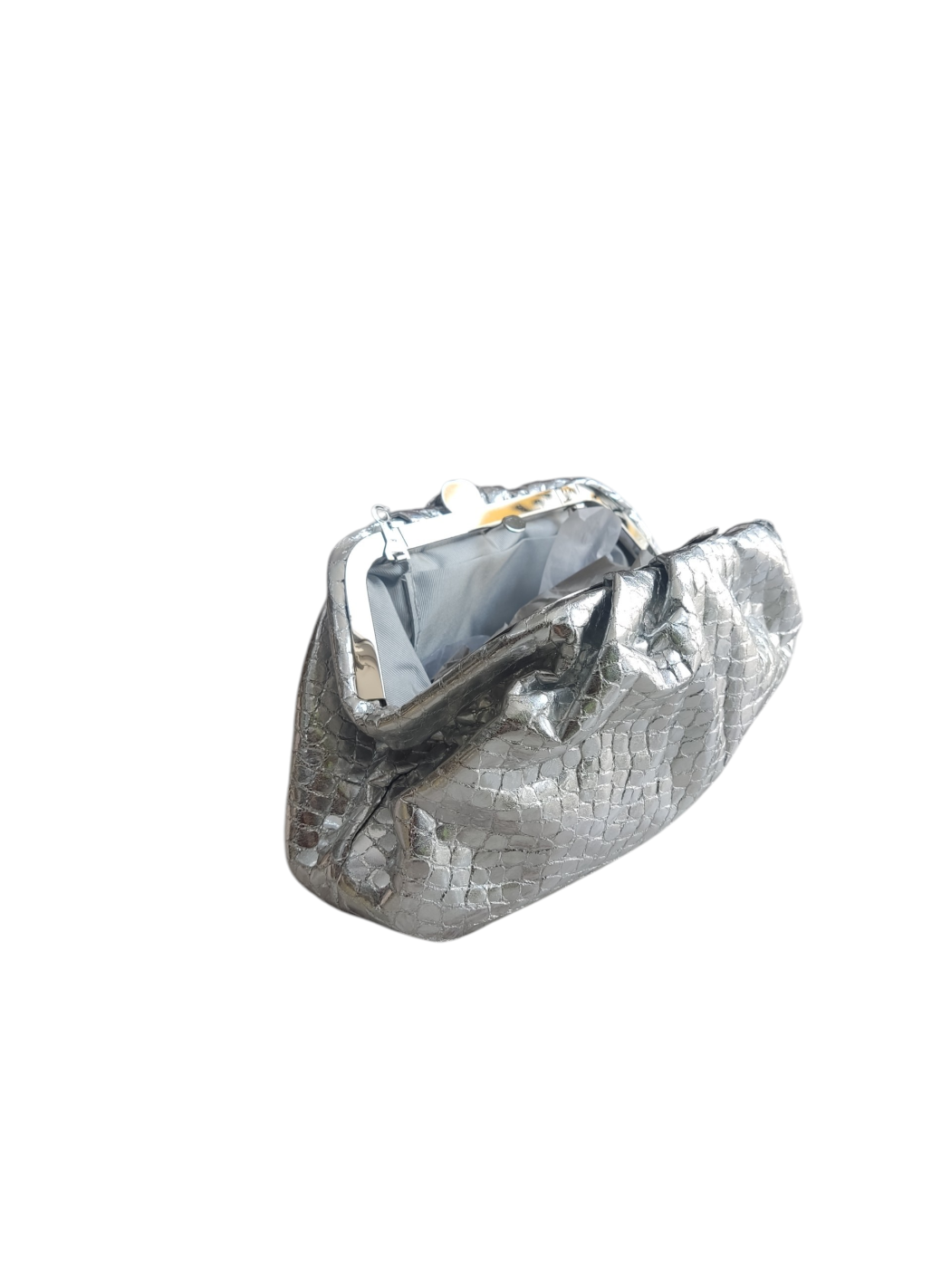 Bolso de fiesta Aba. Cuenta con cierre de boquilla. Lleva asa de cadena en su interior.