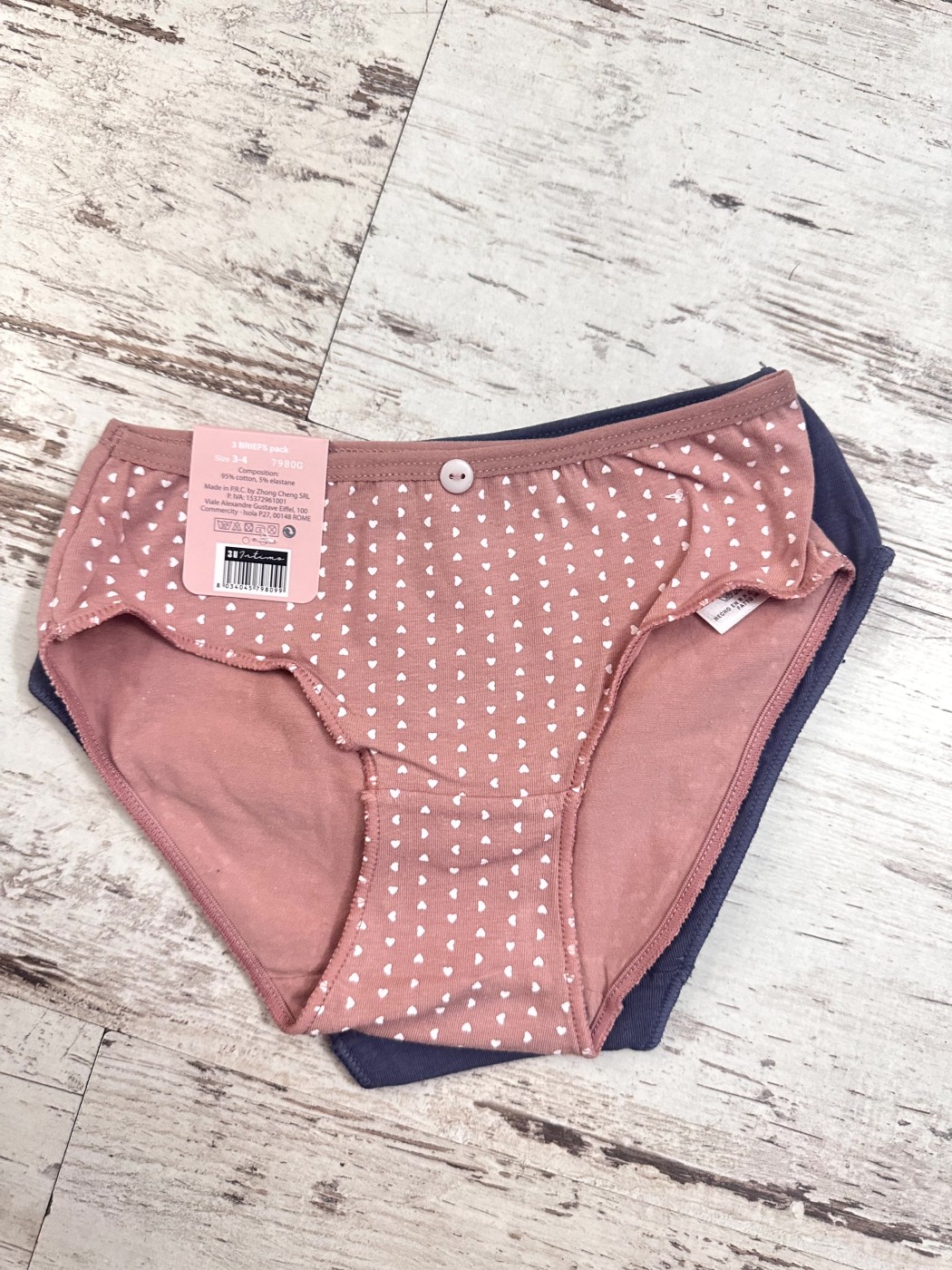 Pack 3 bragas niña love. Pack 3 braguitas de niña con estampados diferentes a cual más bonito. Tiene vivo del tejido de la braguita en todo el borde, cinturilla elástica.