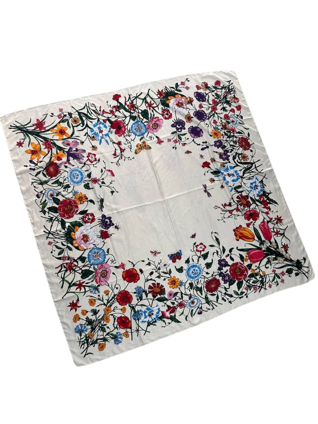 Pañuelo Florencia. Pañuelo cuadrado con estampado floral precioso y elegante. Textura suave y sedosa.