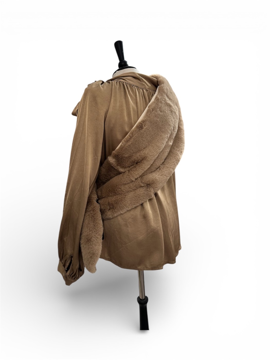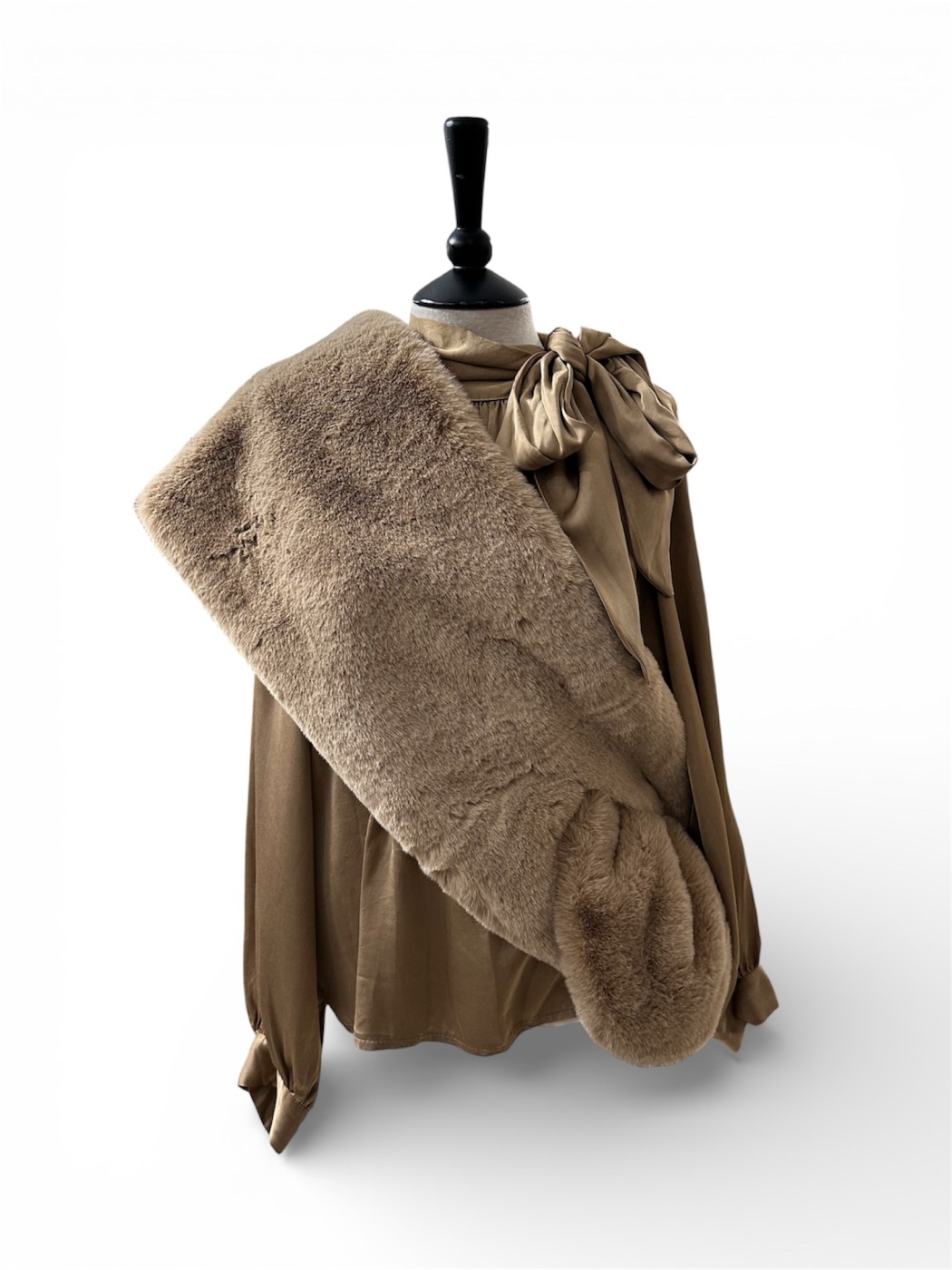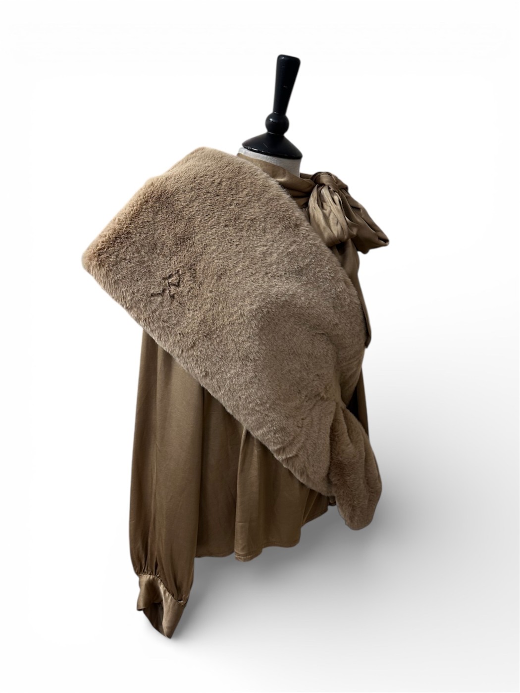 Estola Jimena. Estola de pelo con frunces en los extremos y tiene opción de cruzarse. Un accesorio elegante para complementar cualquier outfit. Destaca por su calidad y suavidad.