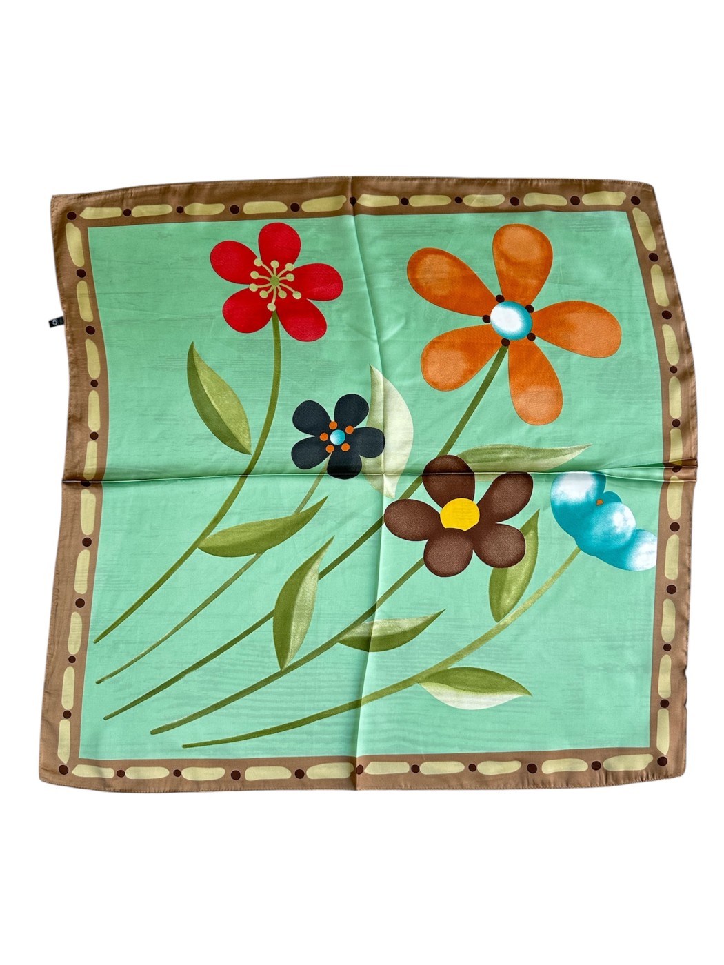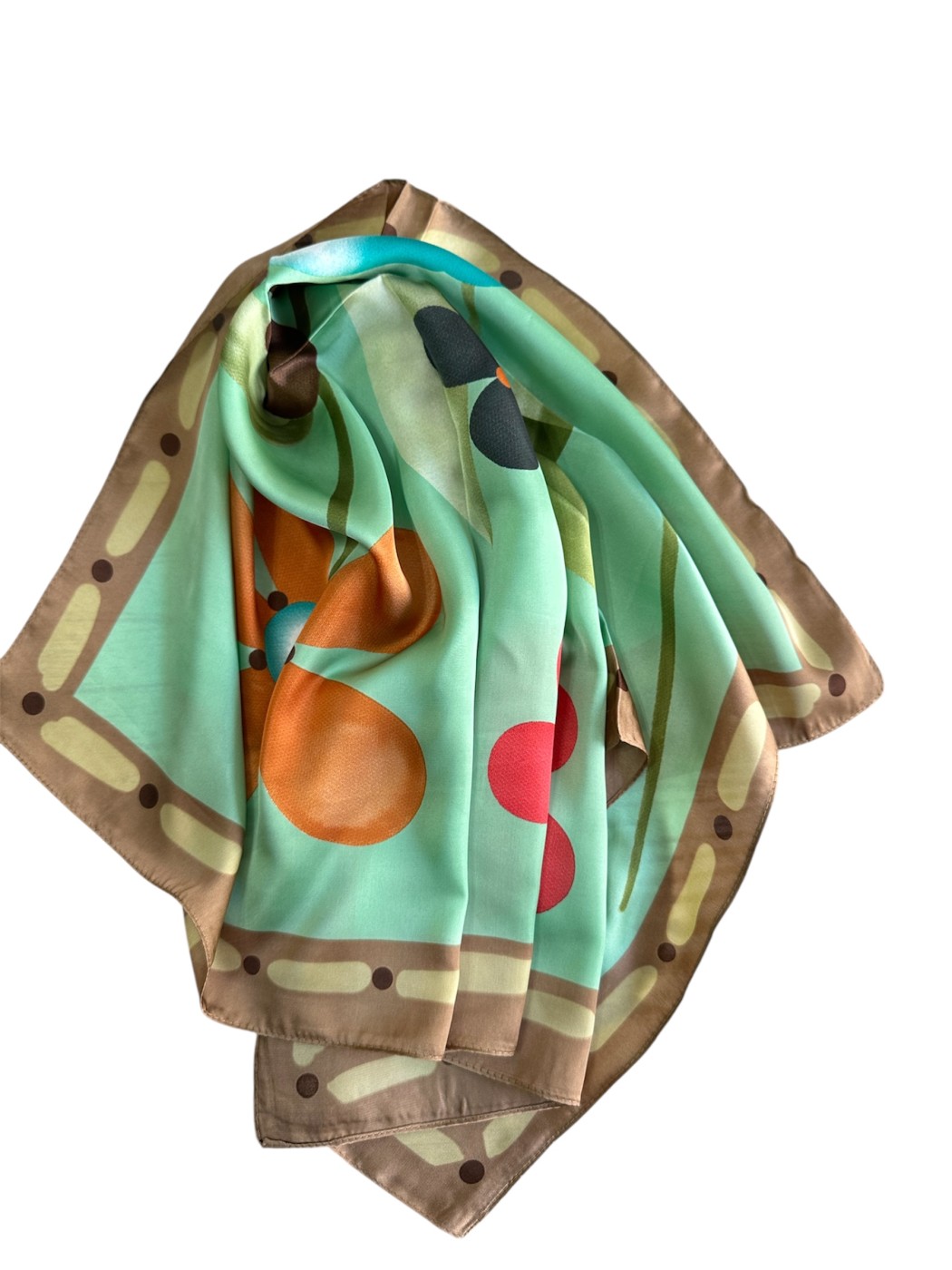 Pañuelo Margarita. Pañuelo de cuello/pelo de estilo fresco y juvenil con estampado floral con margaritas de estilo retro sobre un fondo de color liso y bordes con detalles de puntos. Complemento ideal y original !