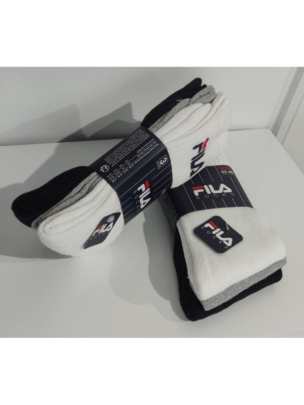 PACK CALCETINES FILA SOCKS. CUENTA CON PACK COMBINADOS CON TALLAJE DE 39-42 Y DE 43-46. PACK NEGRO DE 39-42 Y DE 43-46.