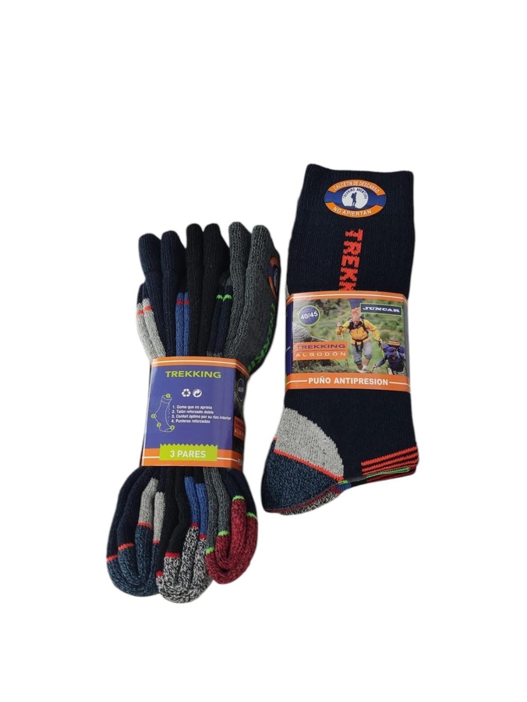 Calcetines trenkking algodón. Pack de tres calcetines de montaña con puño anti presión. Confort para sus pies. Tallaje de 40 a 45.