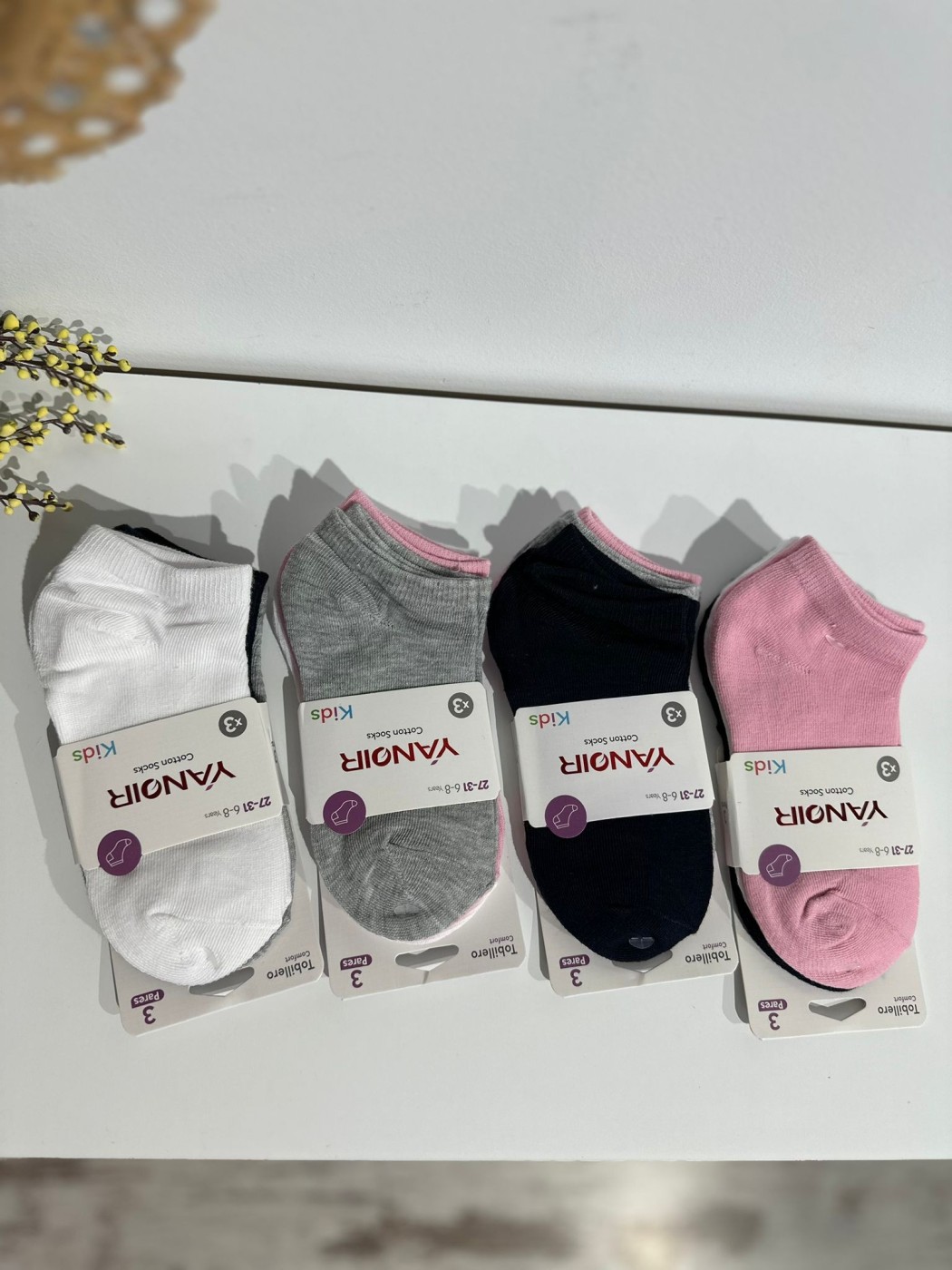 CALCETINES TOBILLEROS LISOS. PACK DE TRES PARES DE CALCETINES TOBILLEROS NIÑA DE COLOR LISO. DIFERENTES TALLAS.