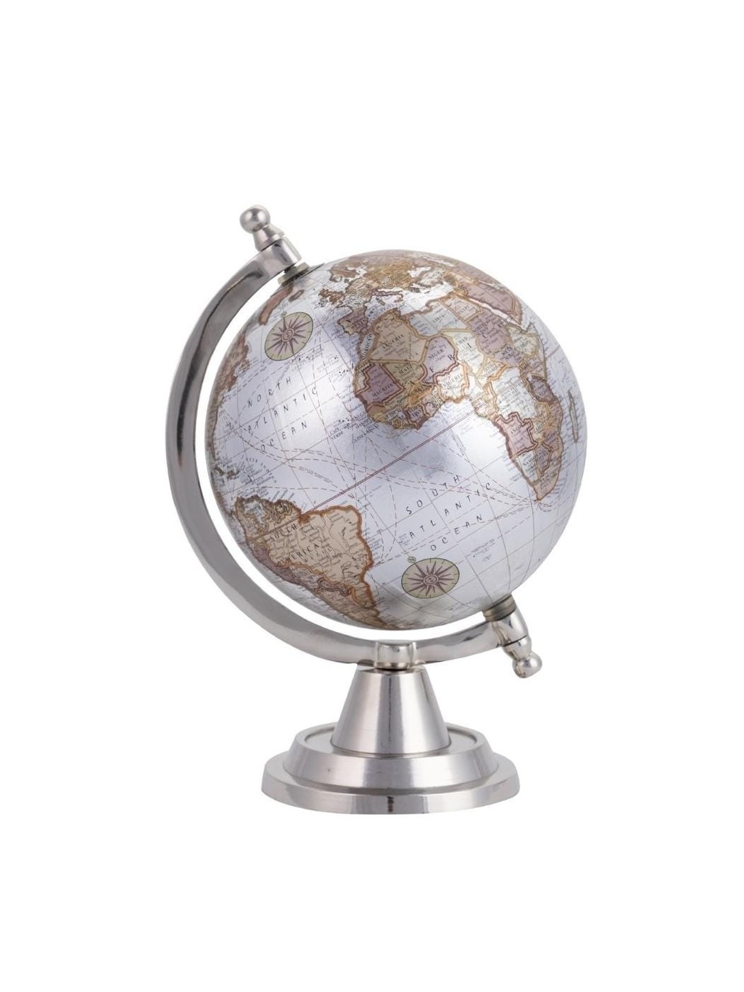 bola del mundo de aluminio nickel. Con medidas de 18x15x30cm.