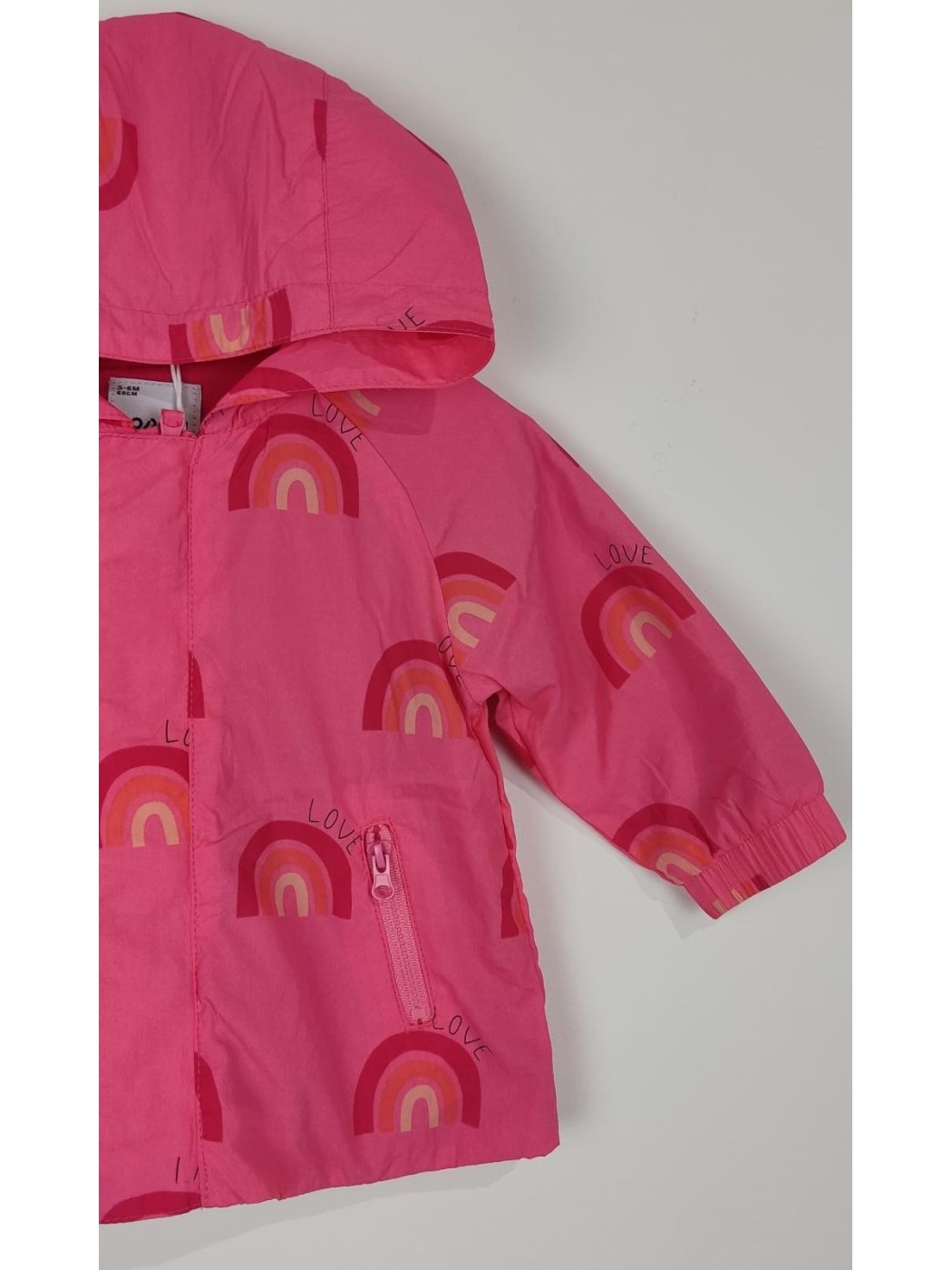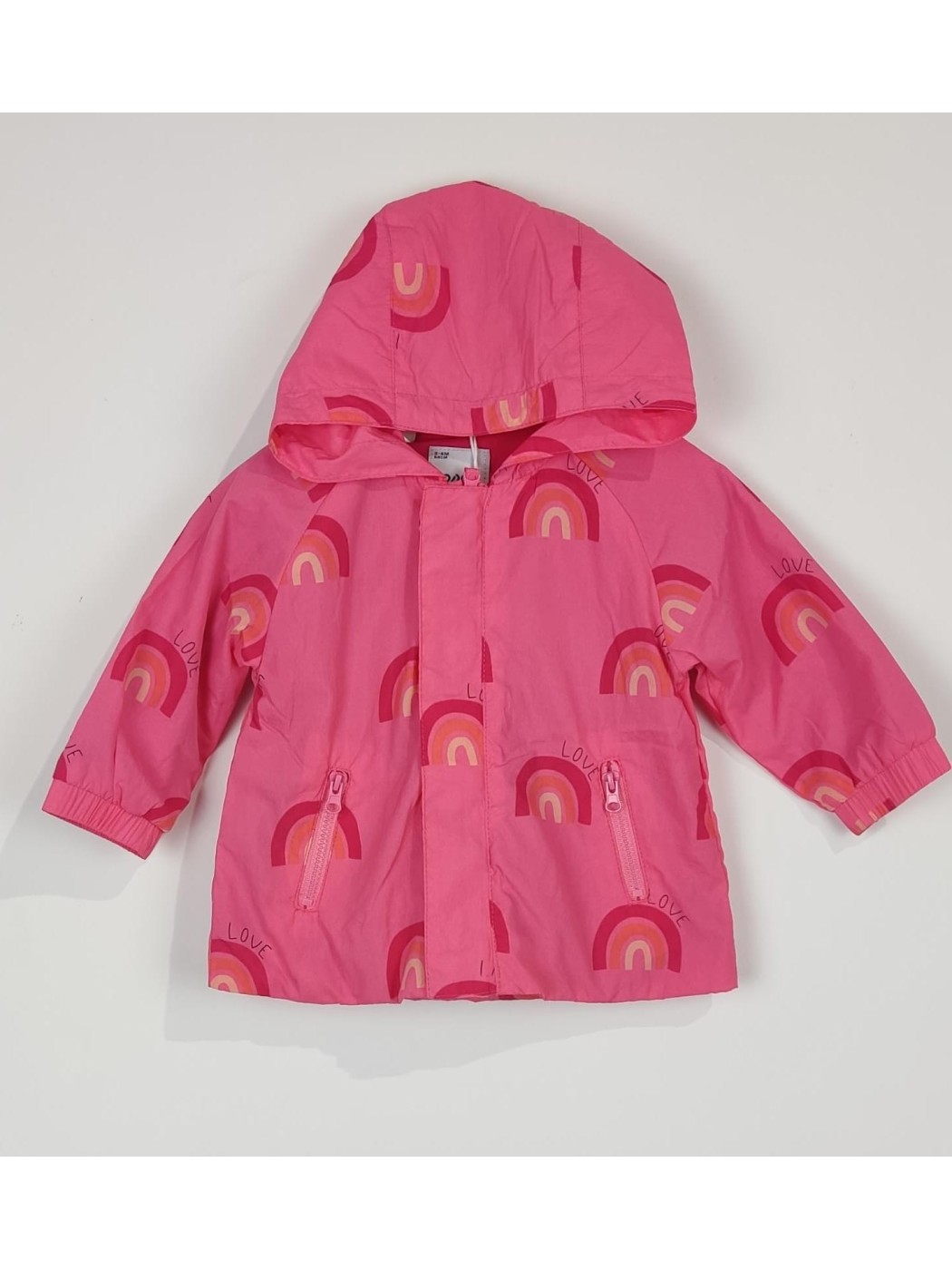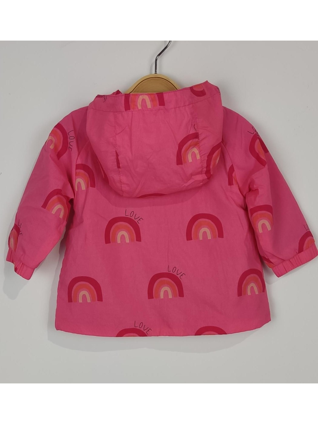 CORTAVIENTO DE BEBE MARCA LOSAN. LLEVA DIVERTIDO ESTAMPADO DE ARCOIRIS, ADEMAS CUENTA CON CAPUCHA Y PUÑOS ENGOMADOS. DOS BOLSILLOS EN LOS LATERALES CON CIERRE DE CREMALLERA Y CREMALLERA CENTRAN CON BOTONES DE CLIC EN LA TAPETA. CONTIENE FORRO INTERIOR.