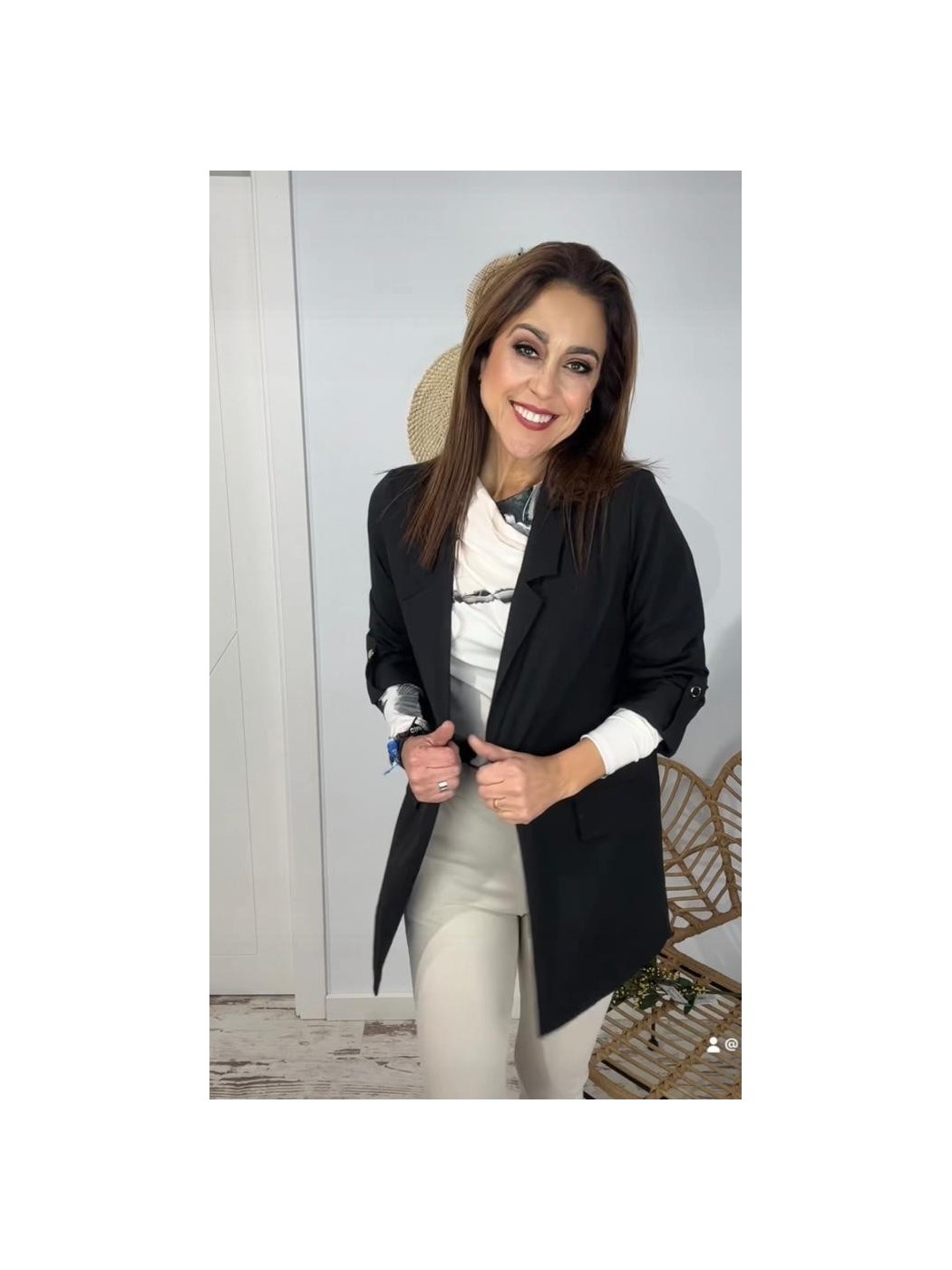 BLAZER ISABEL. CUENTA CON CUELLO SOLAPA Y TAPETA EN LOS LATERALES SIMULANDO A BOLSILLOS. ES TALLA UNICA CON UN MARGEN DE 36 A 44.