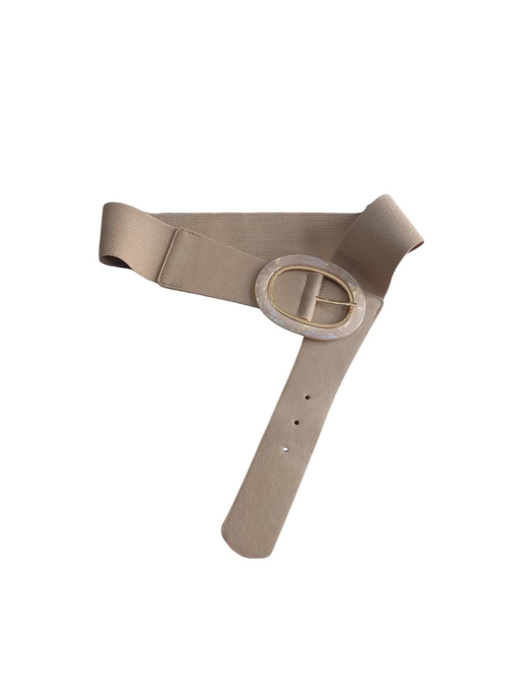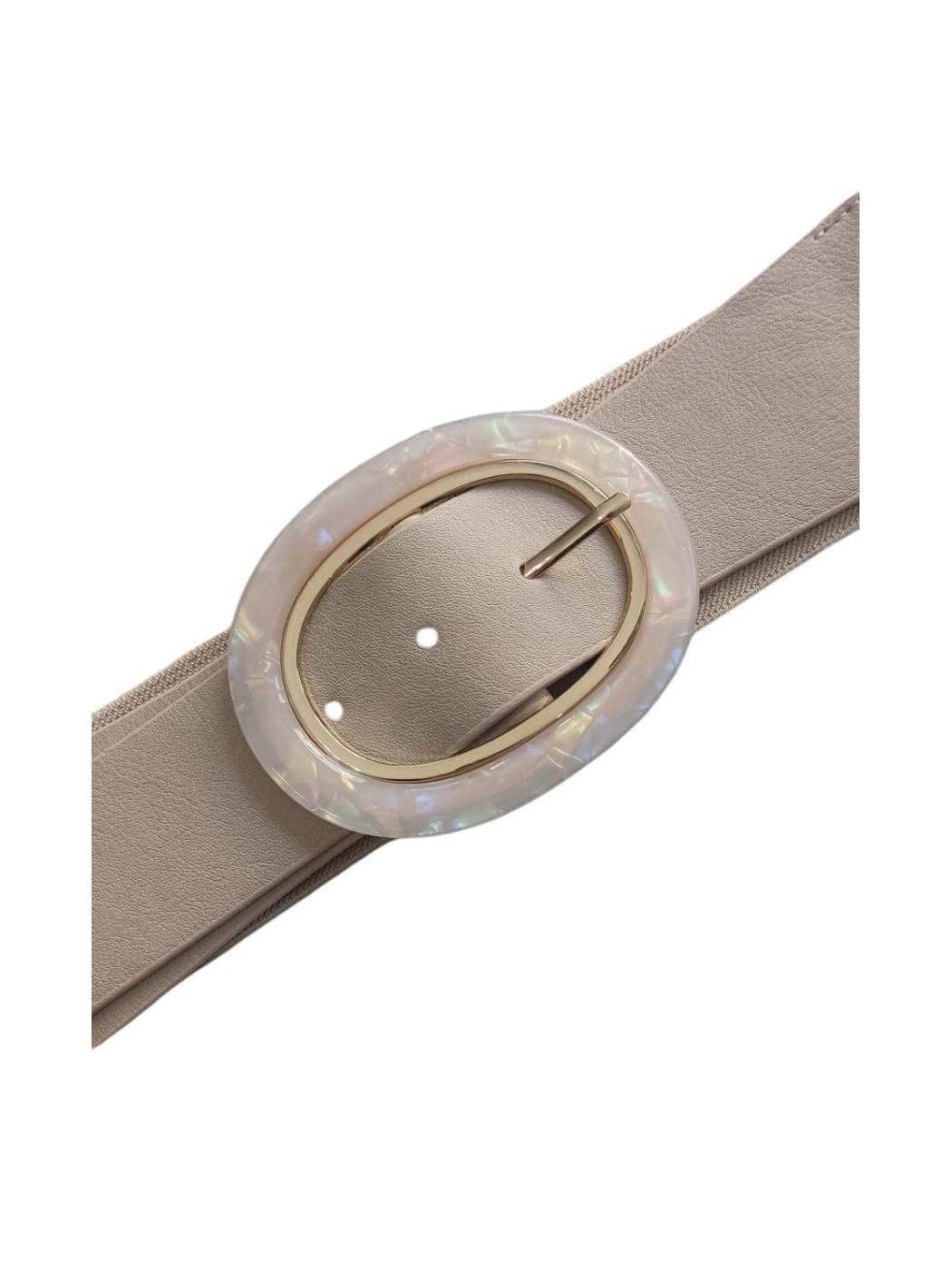 Cinturón Bianca. Cuenta con maxi hebilla ovalada nacarada. Parte trasera engomada.