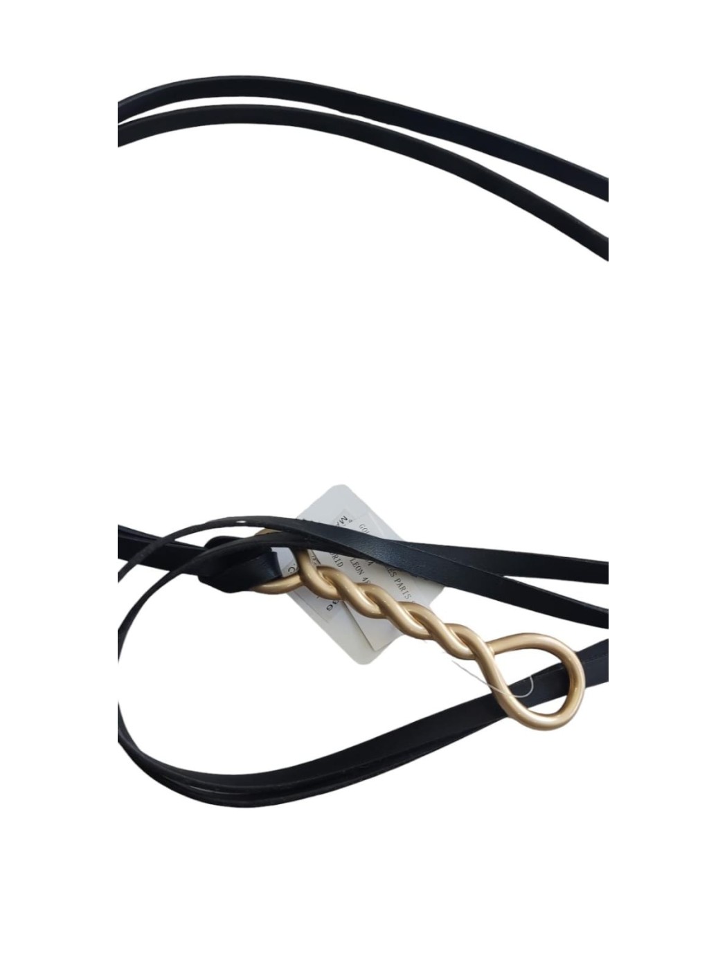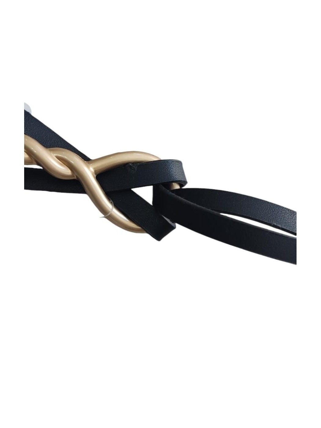 Cinturón doble cinta. Cuenta con doble cinta de poli piel y hebilla trenzada metálica.