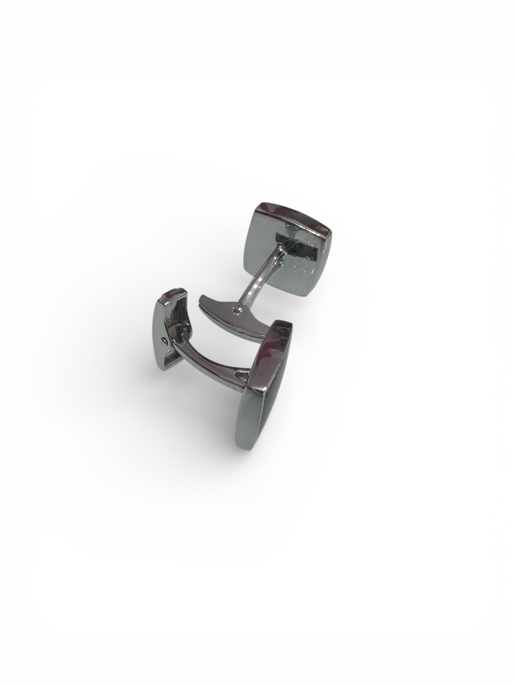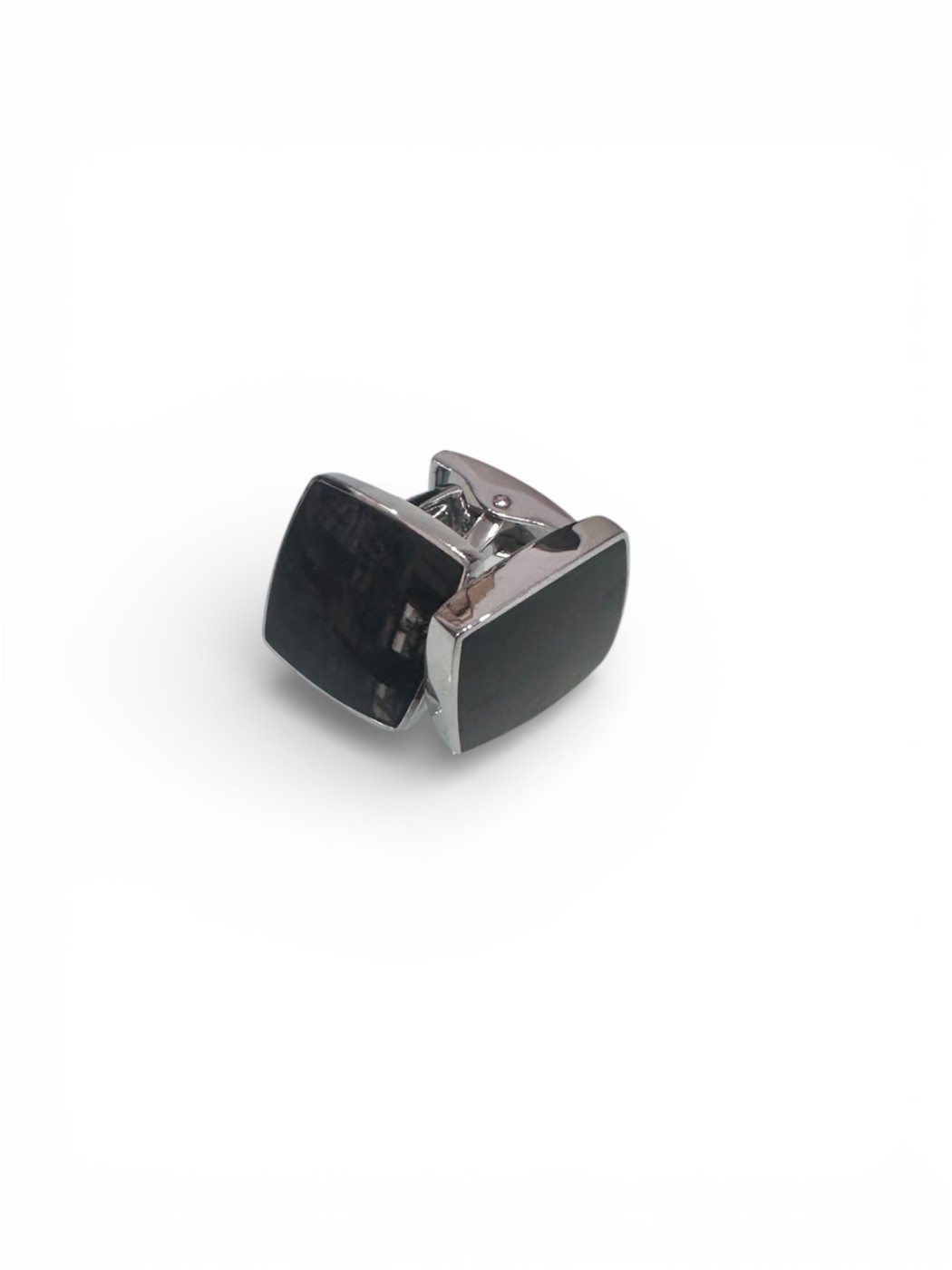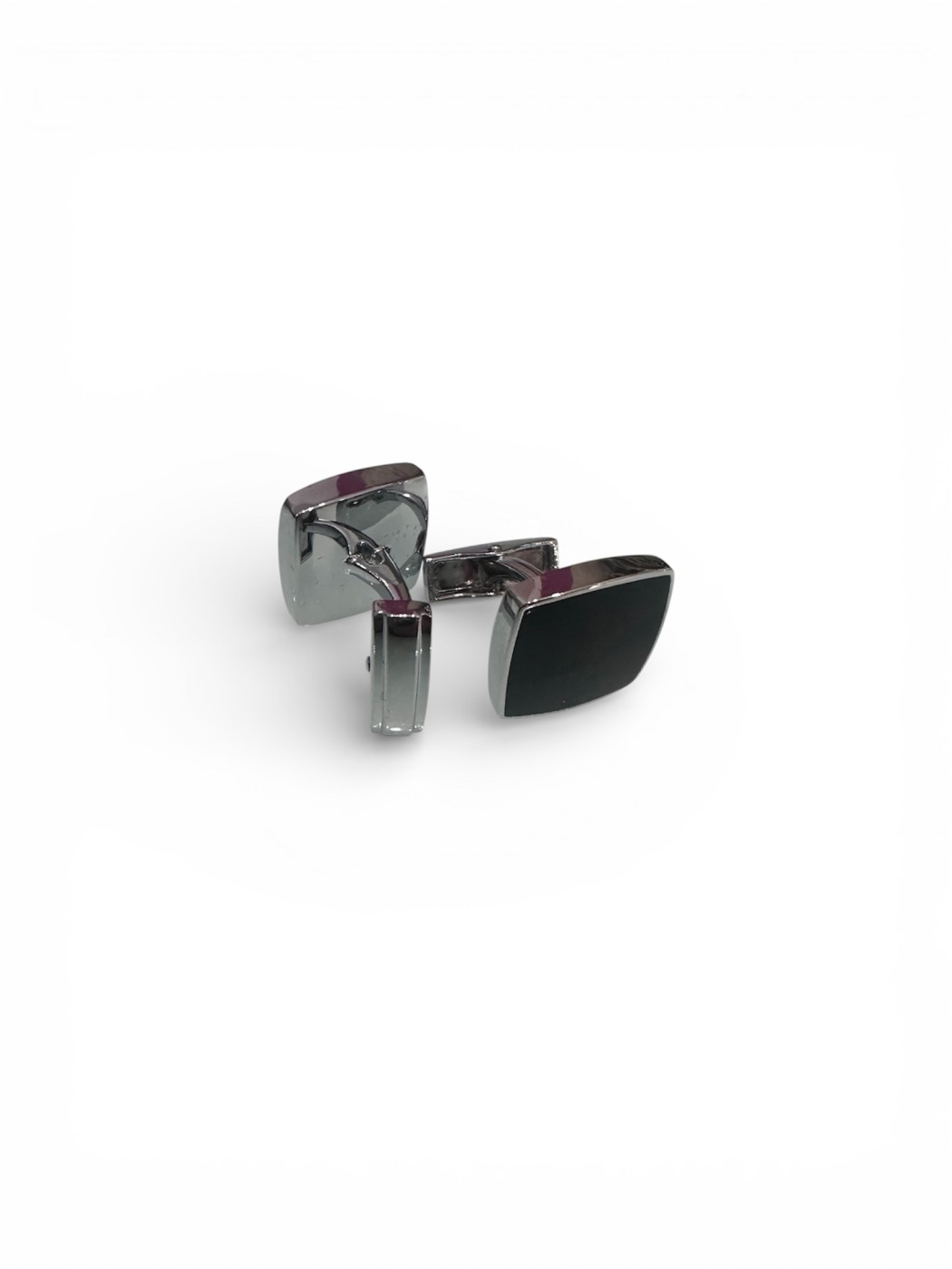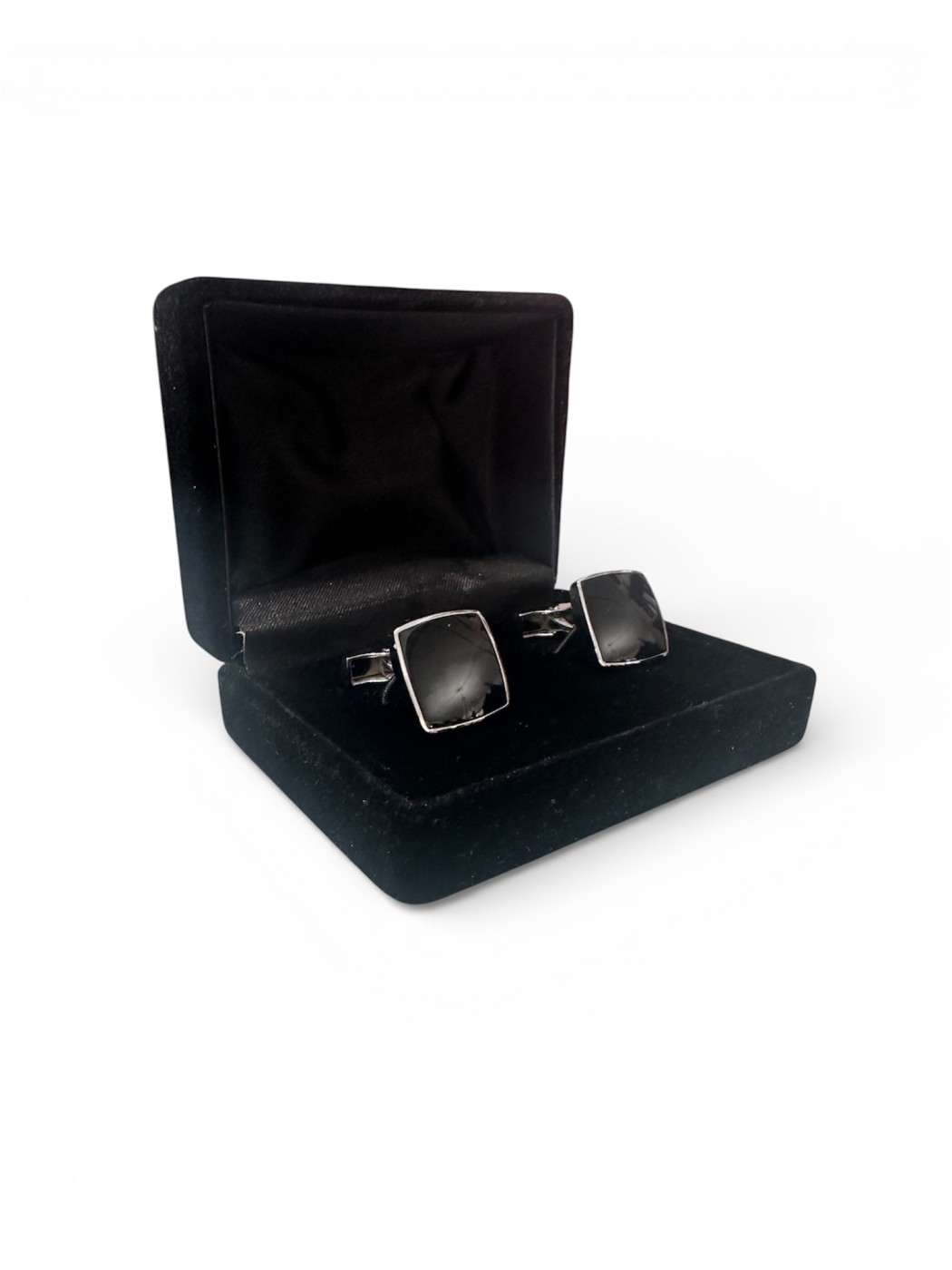Gemelo hombre Misuri. Gemelos de hombre con un diseño cuadrado y una piedra negra engastada en metal plateado. Una pieza preciosa y elegante para los días más especiales.