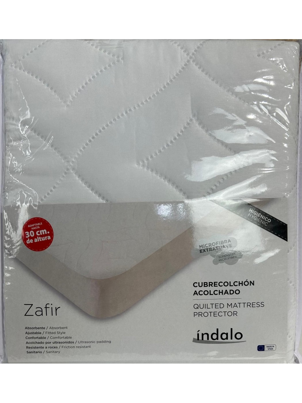 CUBRECOLCHON ACOLCHADO 135CM. COMPOSICION HIGIENICA ADAPTABLE HASTA 30CM DE ALTURA. ES ABSORBENTE, AJUSTABLE, CONFORTABLE, ACOLCHADO POR ULTRASONIDOS, RESISTENTE A ROCES Y SANITARIO.