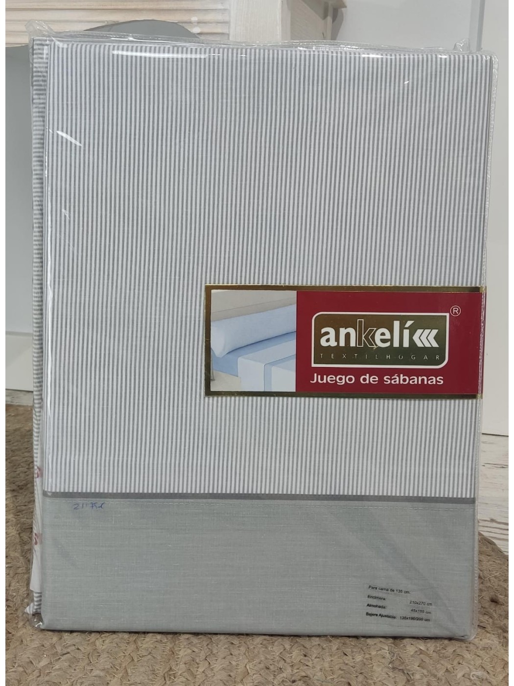 JUEGO DE SABANAS PARA CAMA DE 135CM ANKELI. BAJERA LISA Y ALMOHADON Y ENCIMERAS DE RAYAS.
