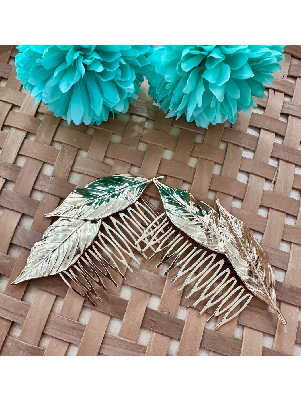 PEINECILLOS HOJAS. PEINECILLOS DE MUJER EN COLOR DORADO CON BRILLO. DESTACA POR SUS HOJAS UNIDAS CON DETALLES EN RELIEVE LO QUE LOS HACE AÚN MÁS ORIGINALES.
