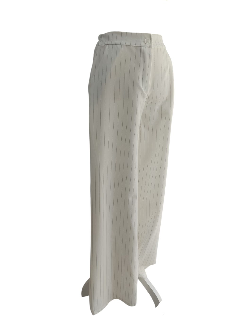 Pantalón raya diplomática Emma. Cuenta con cinturilla trasera engomada. Cuenta con corte de pierna recto. Es talla únidca con un margen de 38 a 42/44.