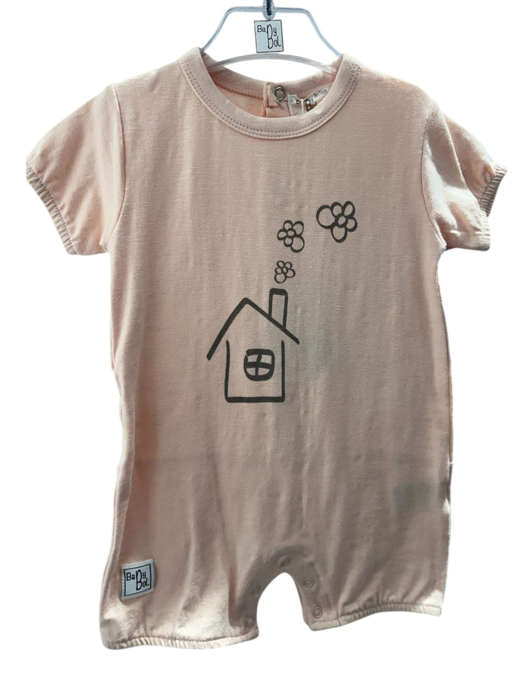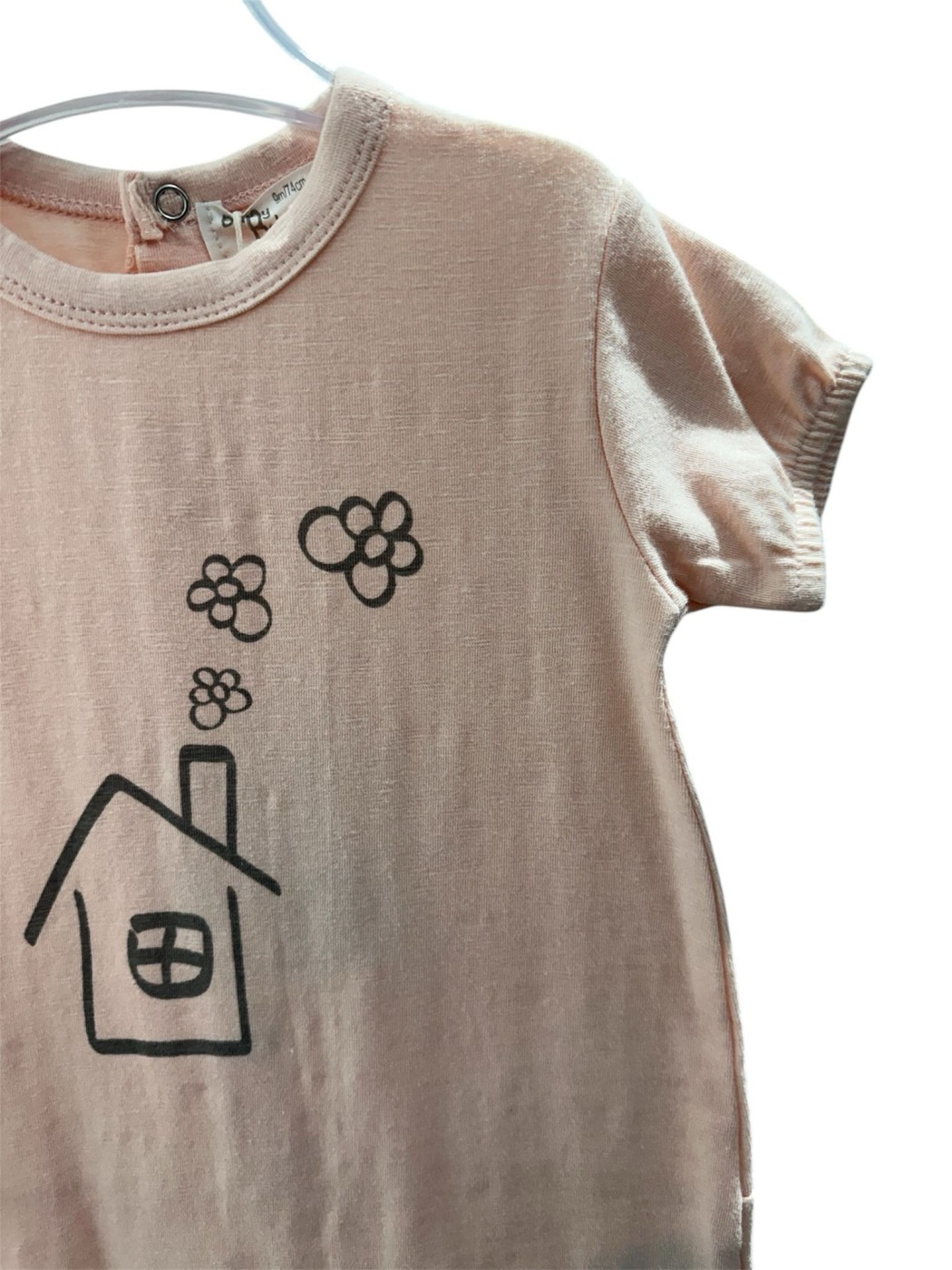 Pelele baby bol. Este adorable body para bebé, en un delicado color rosa claro, está diseñado para brindar comodidad y estilo a tu pequeño. La encantadora ilustración de una casita con florecitas flotando, añade un toque tierno y mágico a la prenda. Confeccionado con materiales suaves y de calidad, este body es perfecto para el día a día, garantizando la máxima comodidad para tu bebé. ¡Una opción ideal para vestir a tu pequeño con estilo y suavidad!