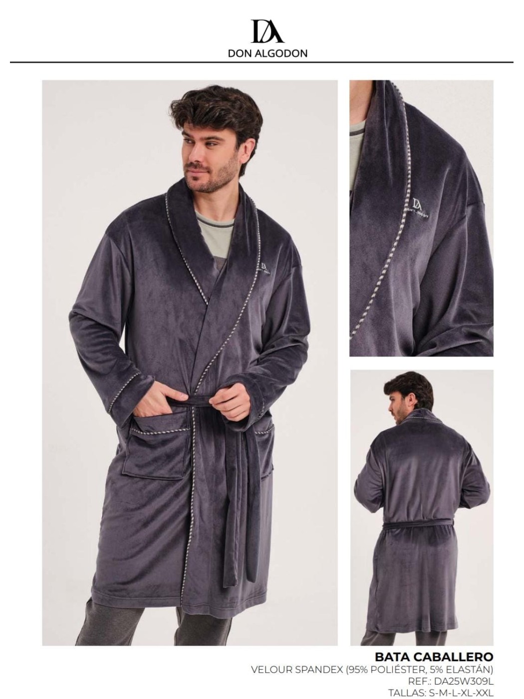 Trajes de Flamenca Mantones de Flamenca Pendientes de Flamenca Flores de Flamenca Broches de Flamenca Peinetas FlamencasBata larga hombre Don Algodón. Cuenta con bolsillos en los laterales. Cinturón del mismo tejido para anudar. Tejido suave de coralina.
