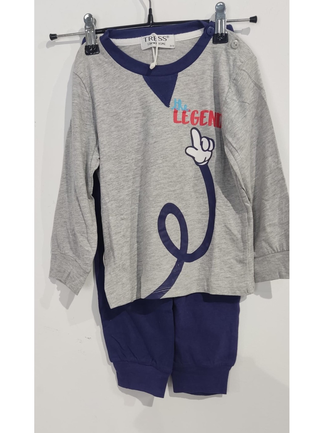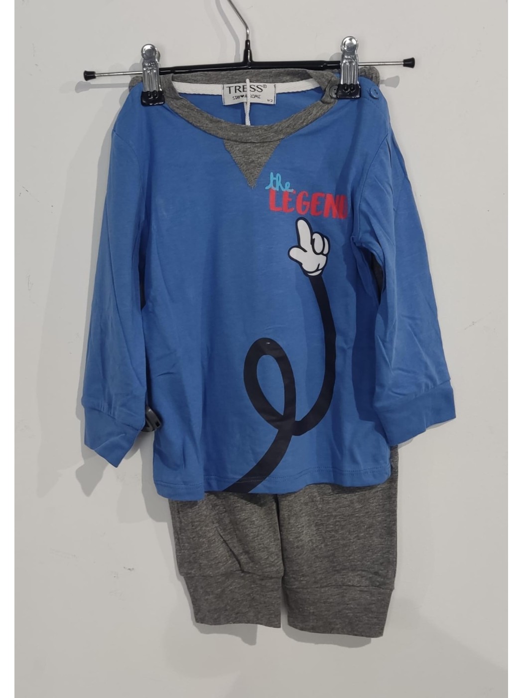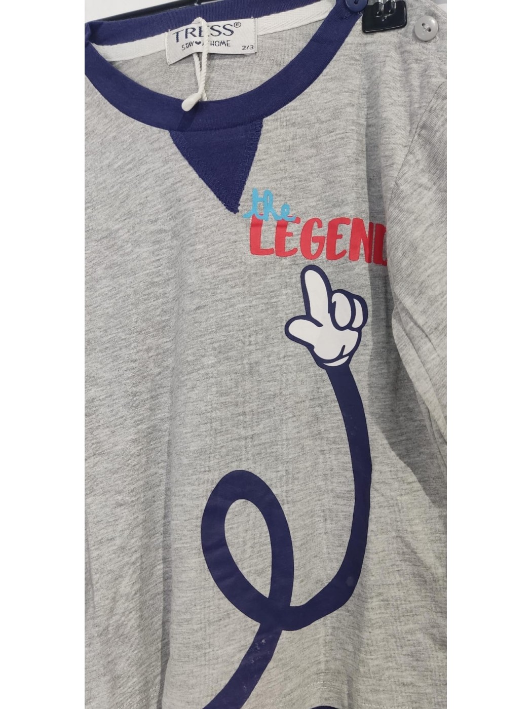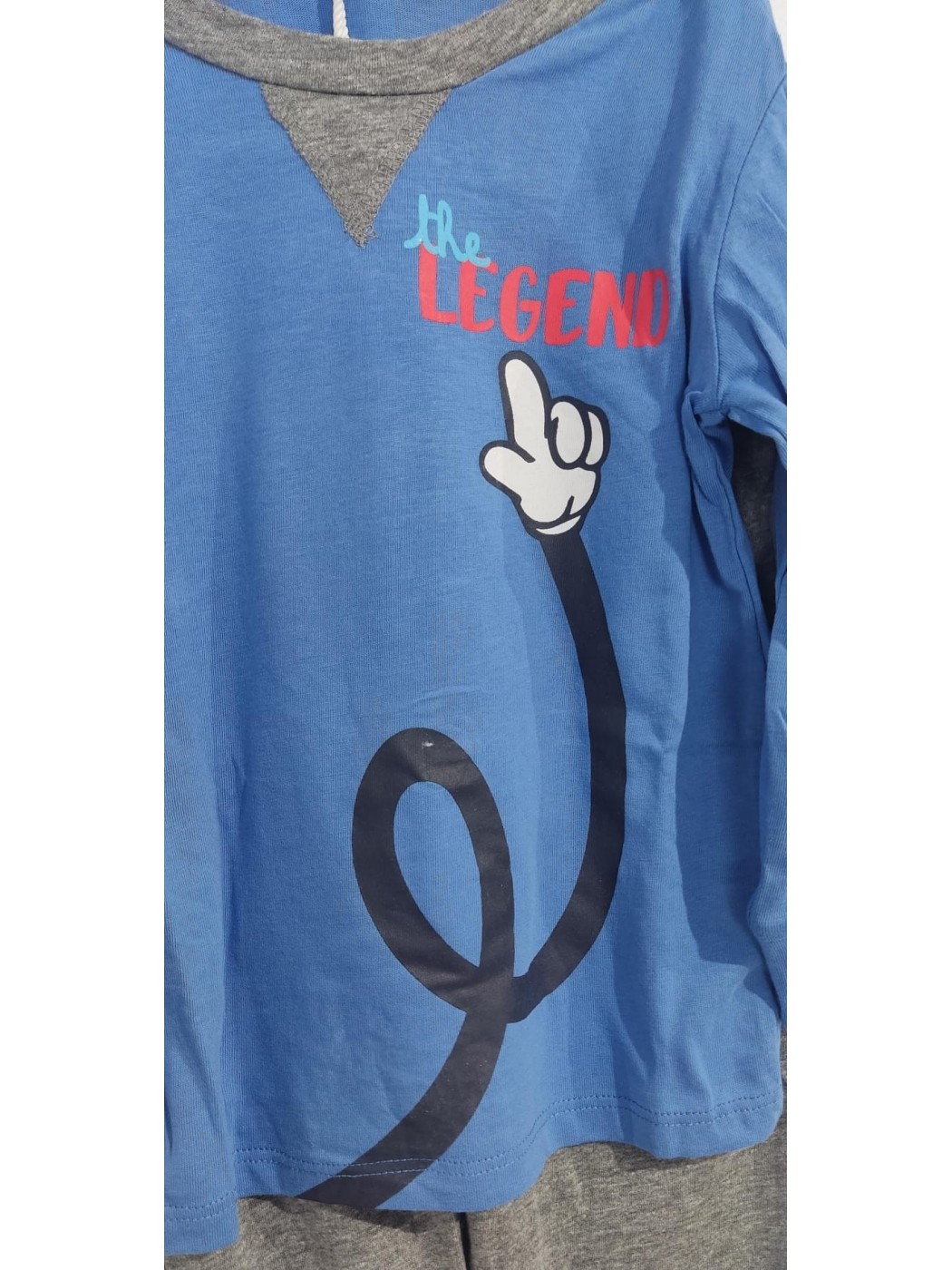 PIJAMA DE NIÑO THE LEGEND. CAMISETA CON BOTONES EN EL HOMBRO Y DISEÑO ESTAMPADO EN SU FRONTAL. PANTALON CON CINTURILLA ENGOMADA Y CORDON PARA AJUSTAR. DISEÑO ESTAMPADO EN EL BAJO DE UNA PIERNA.