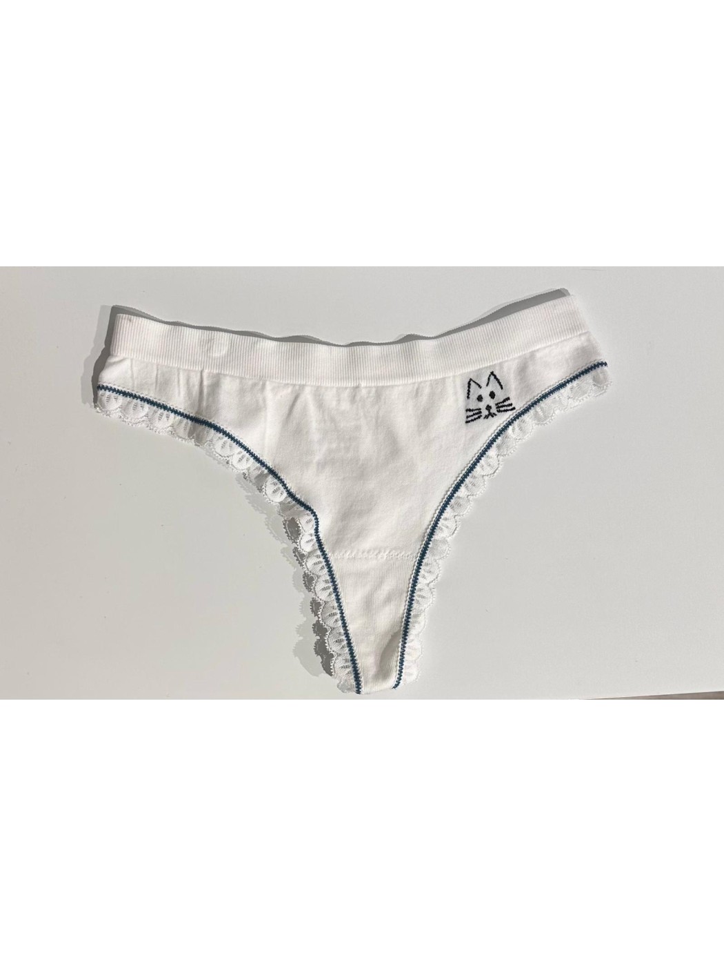 TANGAS GATITO. TANGAS DE MUJER CON CINTURILLA ELÁSTICA. ENCAJE BORDEANDO LA PARTE INFERIOR A MODO DECORACIÓN Y GATITO BORDADO EN LA PARTE DERECHA DEL TANGA. DESTACAN POR SU CALIDAD Y TEXTURA. DIFERENTES TALLAS Y COLORES.