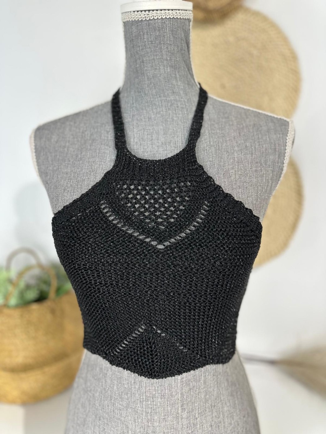 TOP CROCHET LIDIA. TOP DE MUJER HECHO DE CROCHET ANUDADO AL CUELLO. SON TALLAS ÚNICAS CON UN RANGO DESDE UNA 32 A UNA 38.