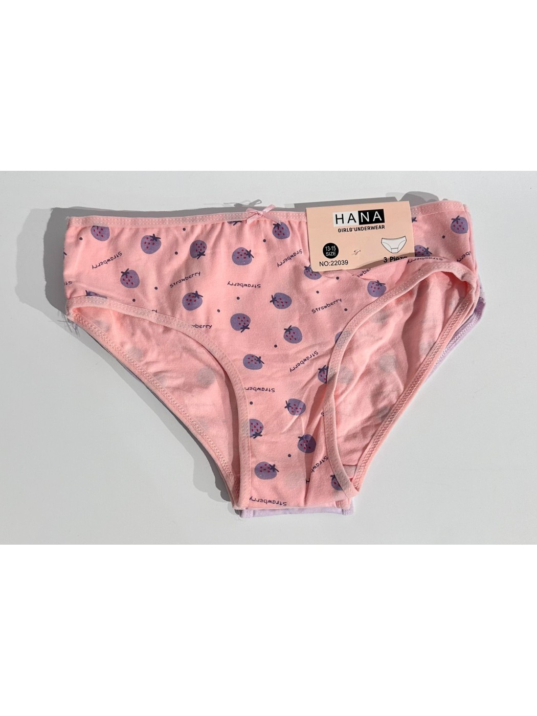 Braguitas Strawberry. Pack de tres braguitas de niña con cinturilla con elástico y lacito delantero. Estampado de strawberry. Diferentes modelos.