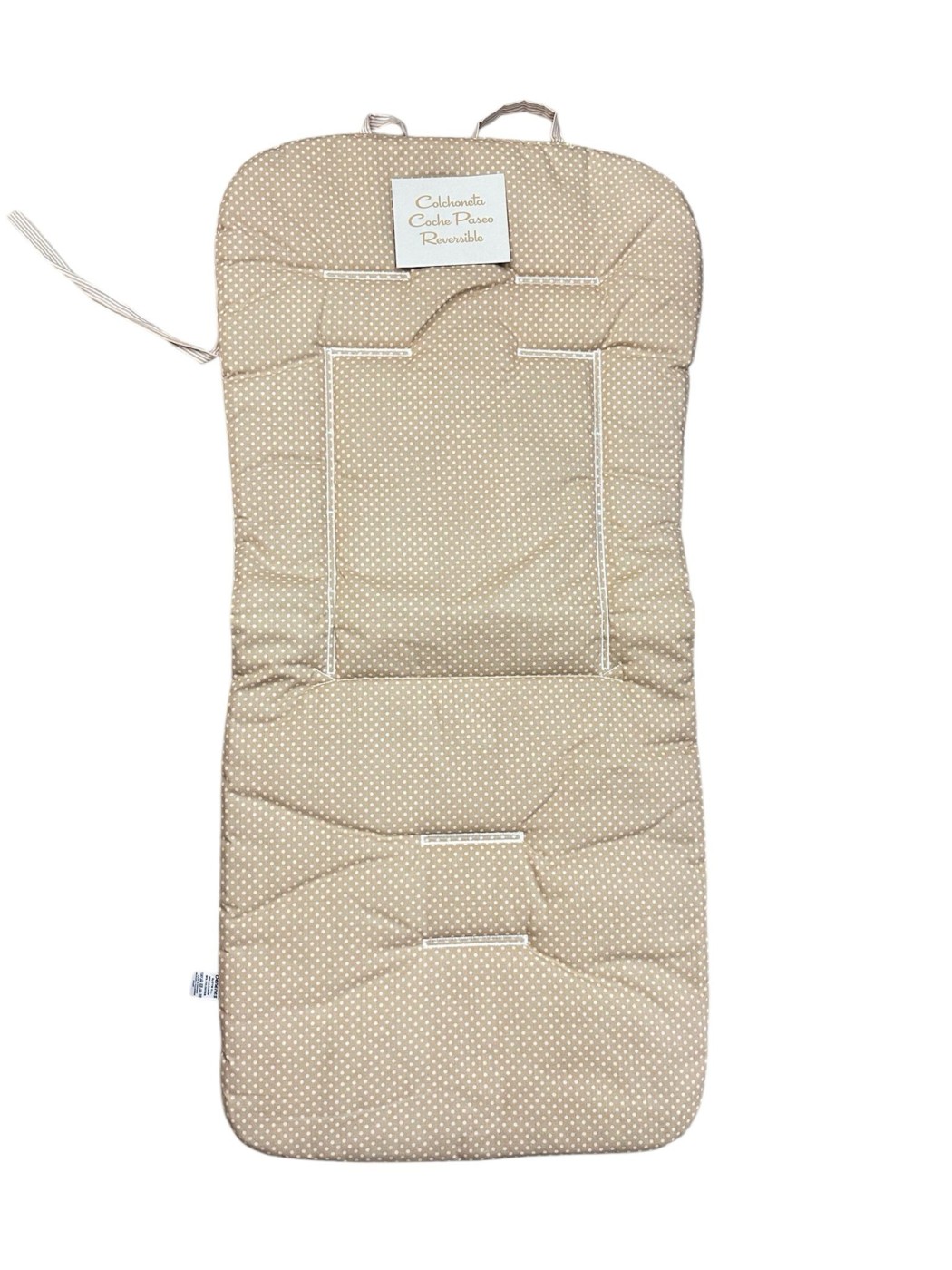 Colchoneta reversible coche paseo. Colchoneta reversible para cochecito de bebé, en suave tejido rosa con estampado de lunares blancos. Suave, acolchada y reversible para mayor comodidad.