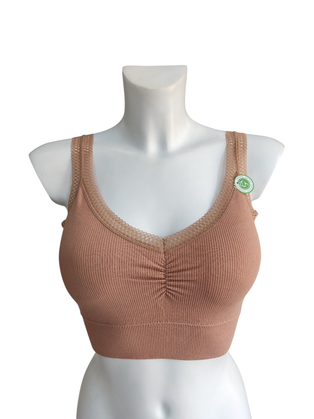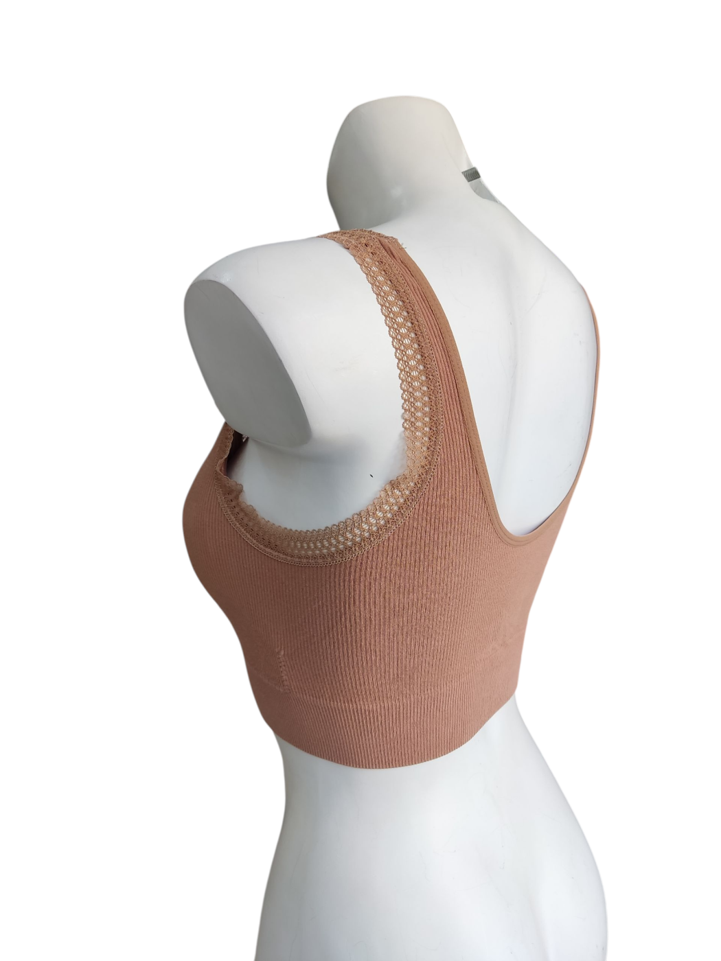 Sujetador invisible comfort. Cuenta con tejido de canalé engomado y bordes de encaje al tono. Cuenta con relleno extraíble.