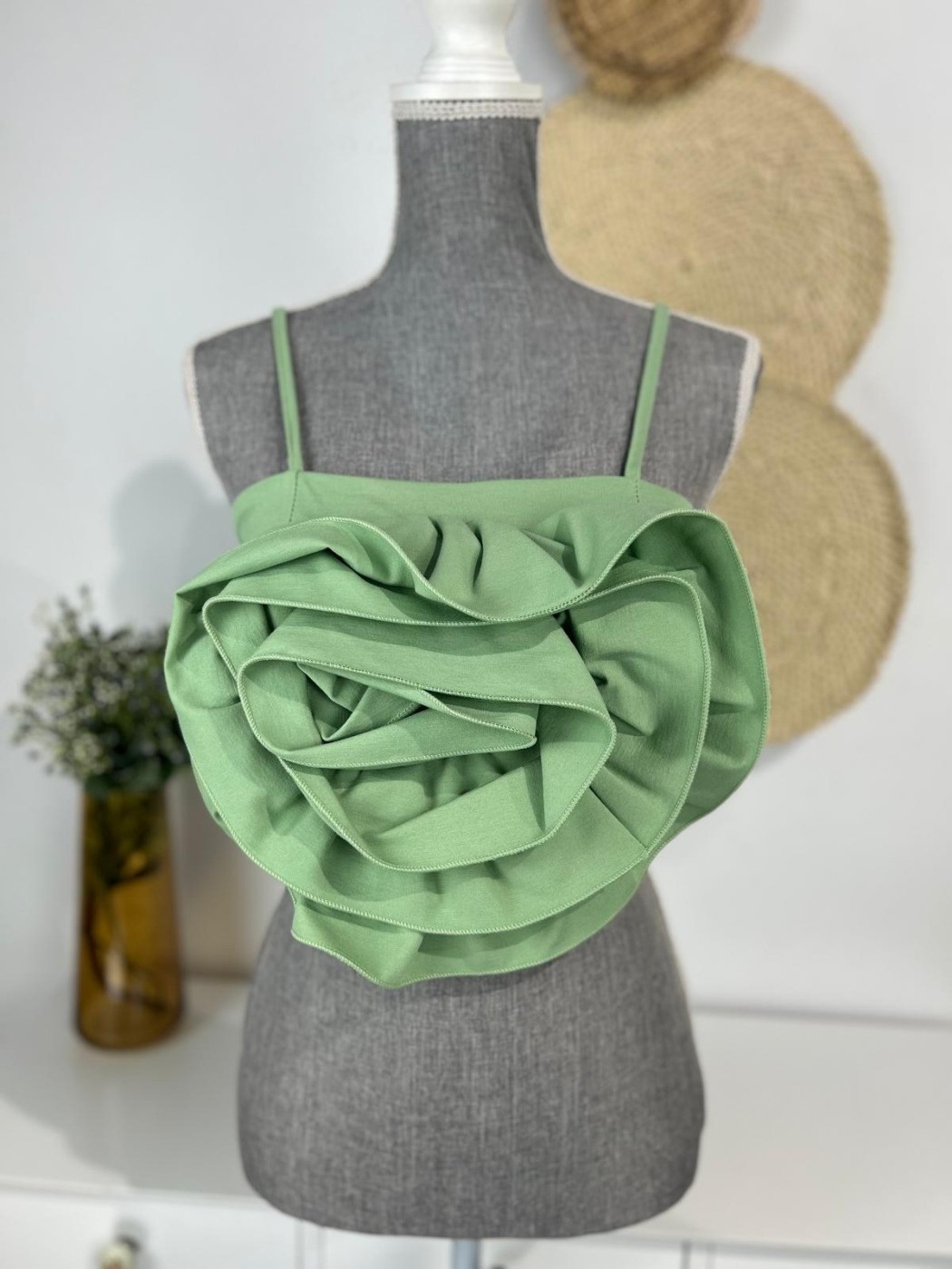 TOP MAXI FLOR. CUENTA CON TIRANTA FINA Y DISEÑO MAXI FLOR DEL MISMO TEJIDO EN LA PARTE FRONTAL. ES TALLA UNICA CON UN MARGEN DE 36 A 38.