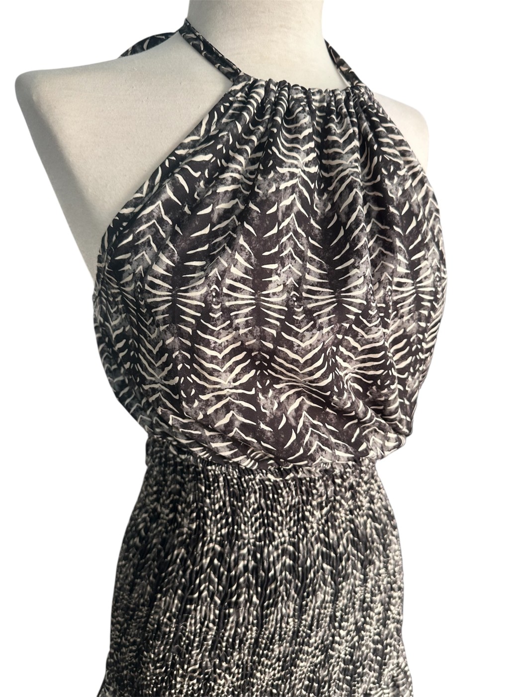 Vestido Nayma. Vestido juvenil atado al cuello con la parte inferior de panal de abeja y terminado en un pequeño volantito. Destaca por su suavidad y textura. Talla única con un margen desde una 36 a una 42.