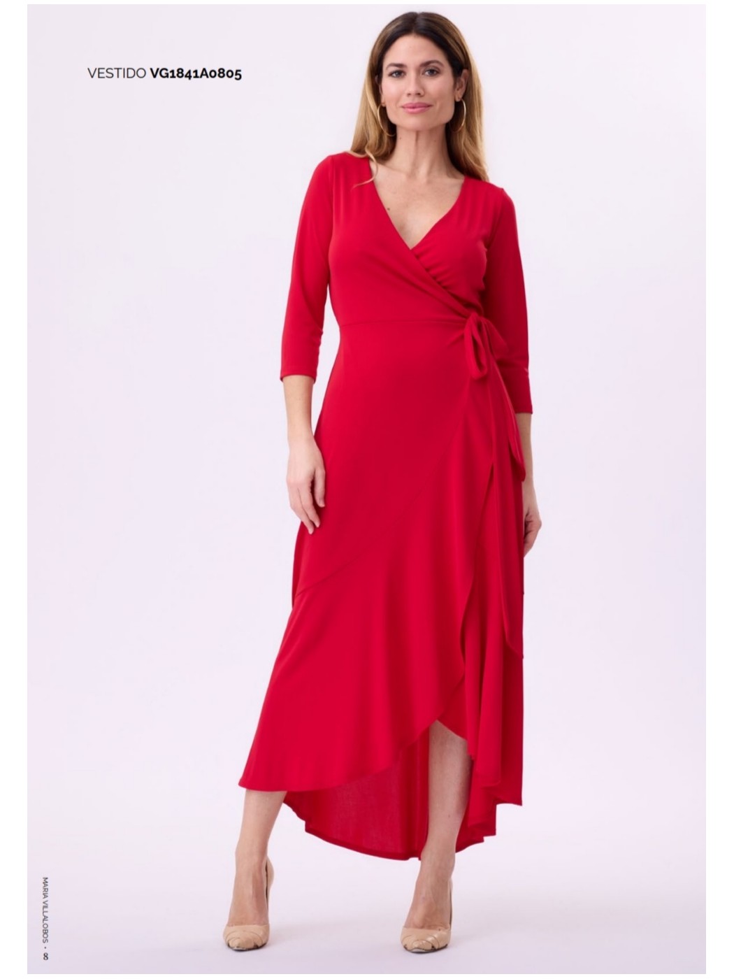 Trajes de Flamenca Mantones de Flamenca Pendientes de Flamenca Flores de Flamenca Broches de Flamenca Peinetas FlamencasVestido Jaén María Villalobos. Vestido cruzado con escote en forma de ´v´. Manga 3/4. Cuenta con un poco más de largura por la parte trasera.