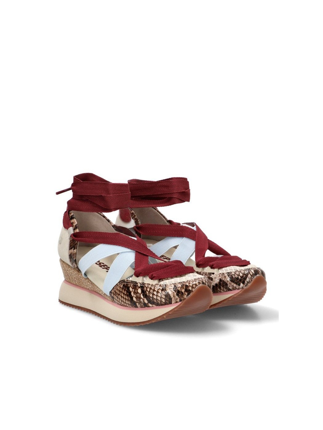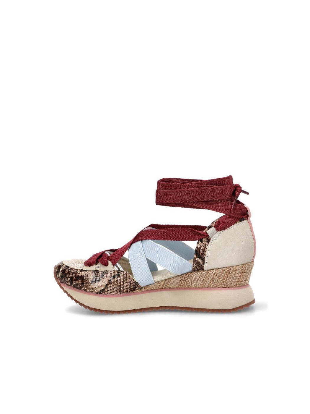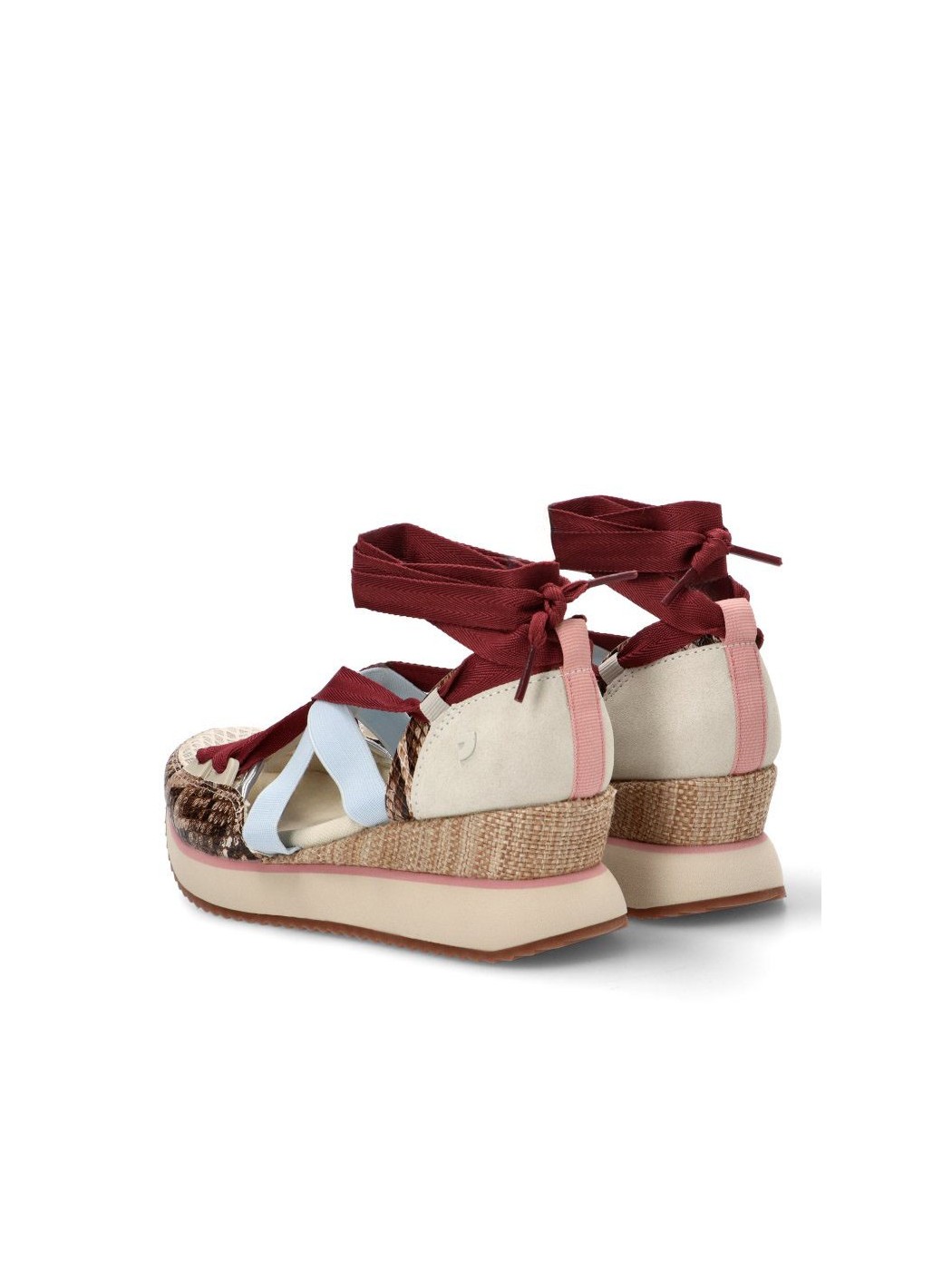 Trajes de Flamenca Mantones de Flamenca Pendientes de Flamenca Flores de Flamenca Broches de Flamenca Peinetas FlamencasEsparteña Ilorin Gioseppo. Zapatillas abiertas con piel serraje, rejilla y cuña forrada. Contrastes de color. Cuentan con planta acolchada y tiras de sujeción a lo largo del empeine. Altura cuña: 5,5 cm. Goma cruzada en empeine y lazada a la pierna.