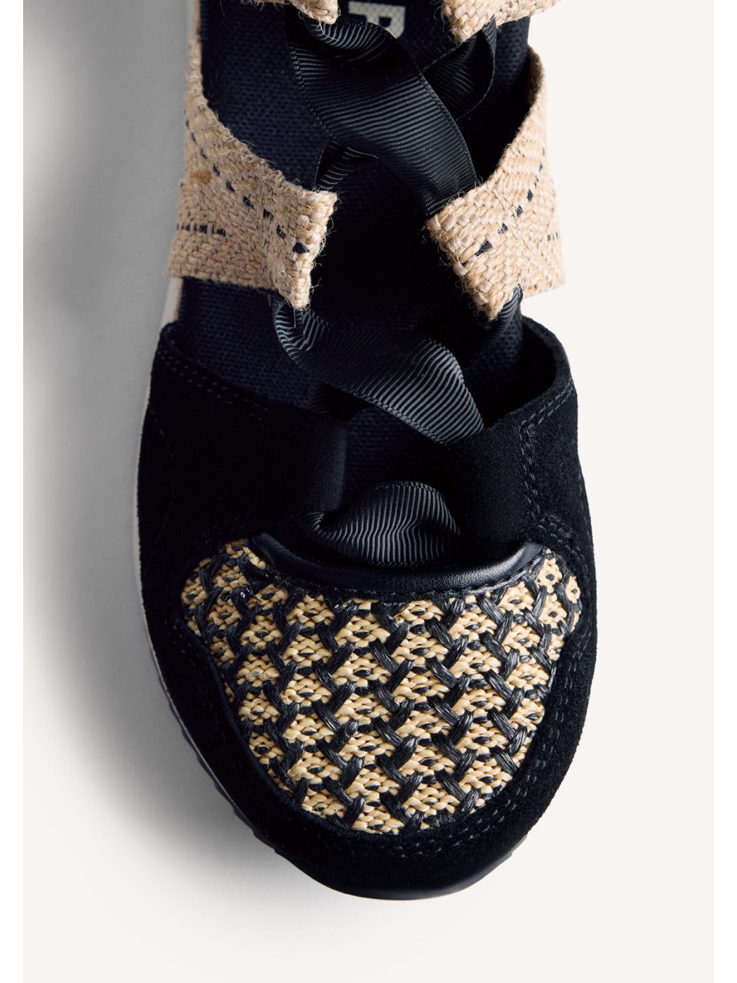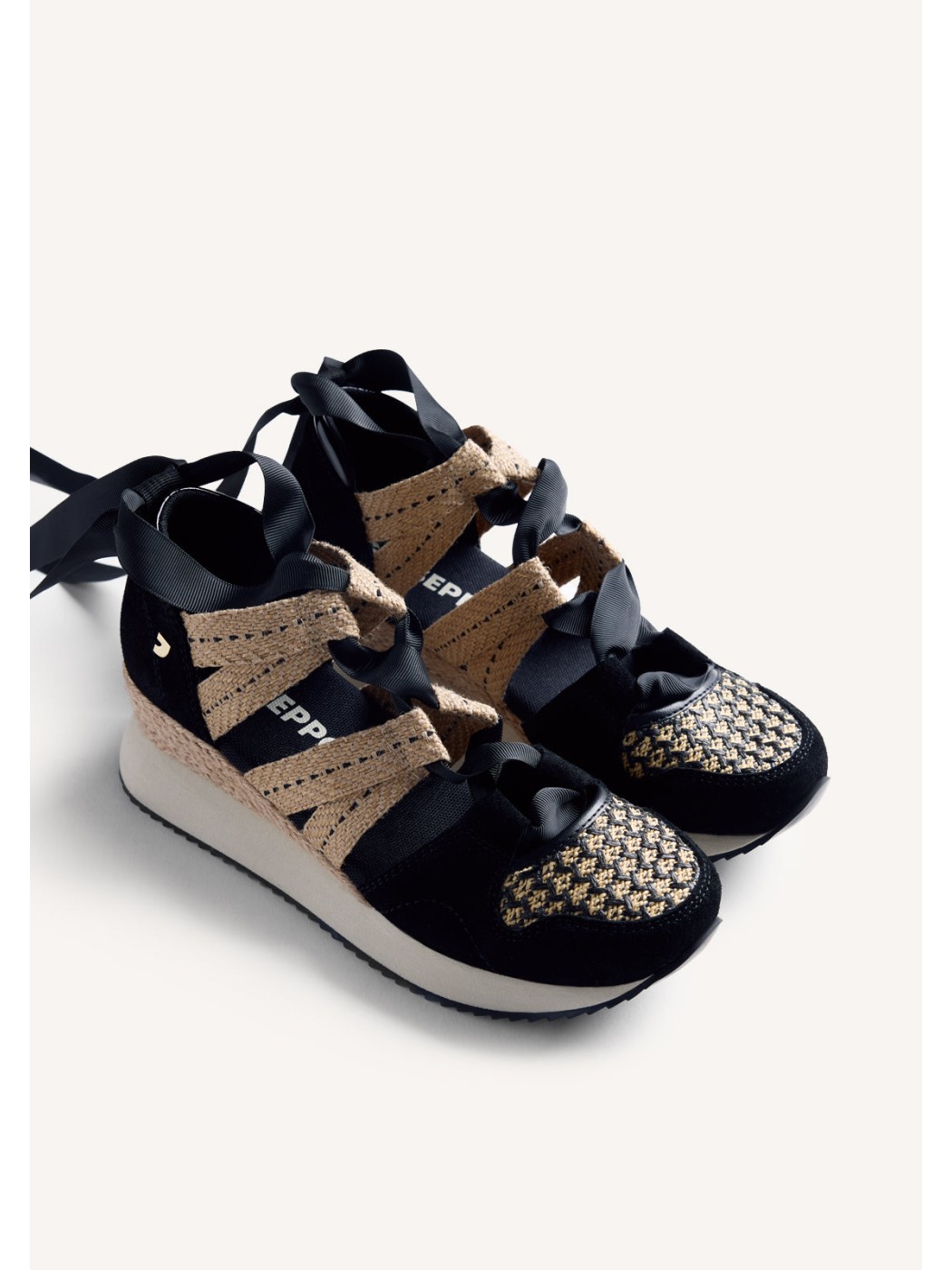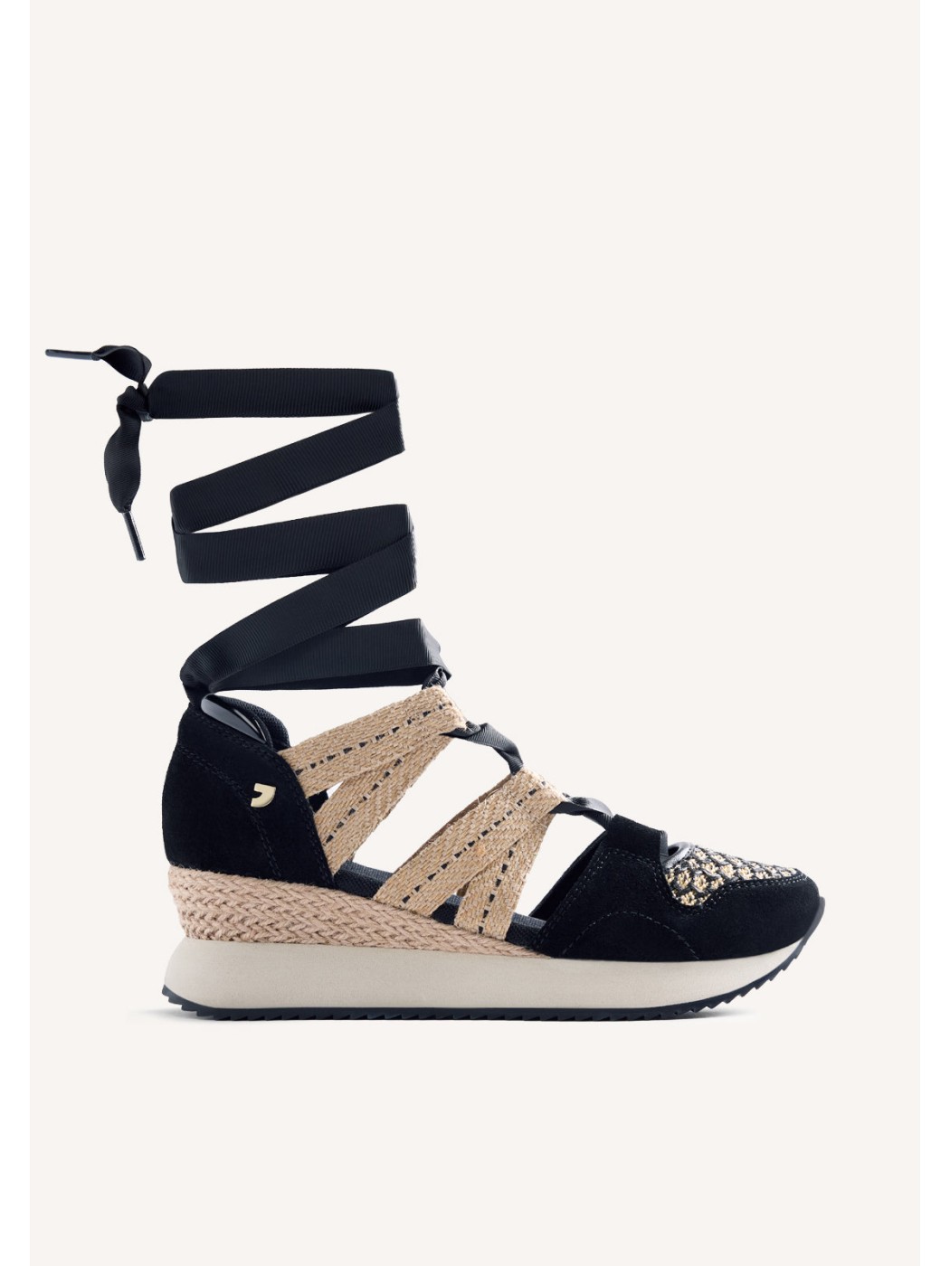 Trajes de Flamenca Mantones de Flamenca Pendientes de Flamenca Flores de Flamenca Broches de Flamenca Peinetas FlamencasSandalia cuña lazo Gioseppo. Zapatillas abiertas con piel serraje, rejilla y cuña forrada estilo rafia. Prespuntes decorativos. Cuentan con planta acolchada. Atadas con lazos. Altura cuña: 5,5 cm. Corte de piel, rafia, material vegetal, poliéster transpirable y poliuretano. Forro y plantilla de poliéster transpirable reciclado con certificación Global Recycled Standard. Entresuela de EVA ligera. Suela de TPR.