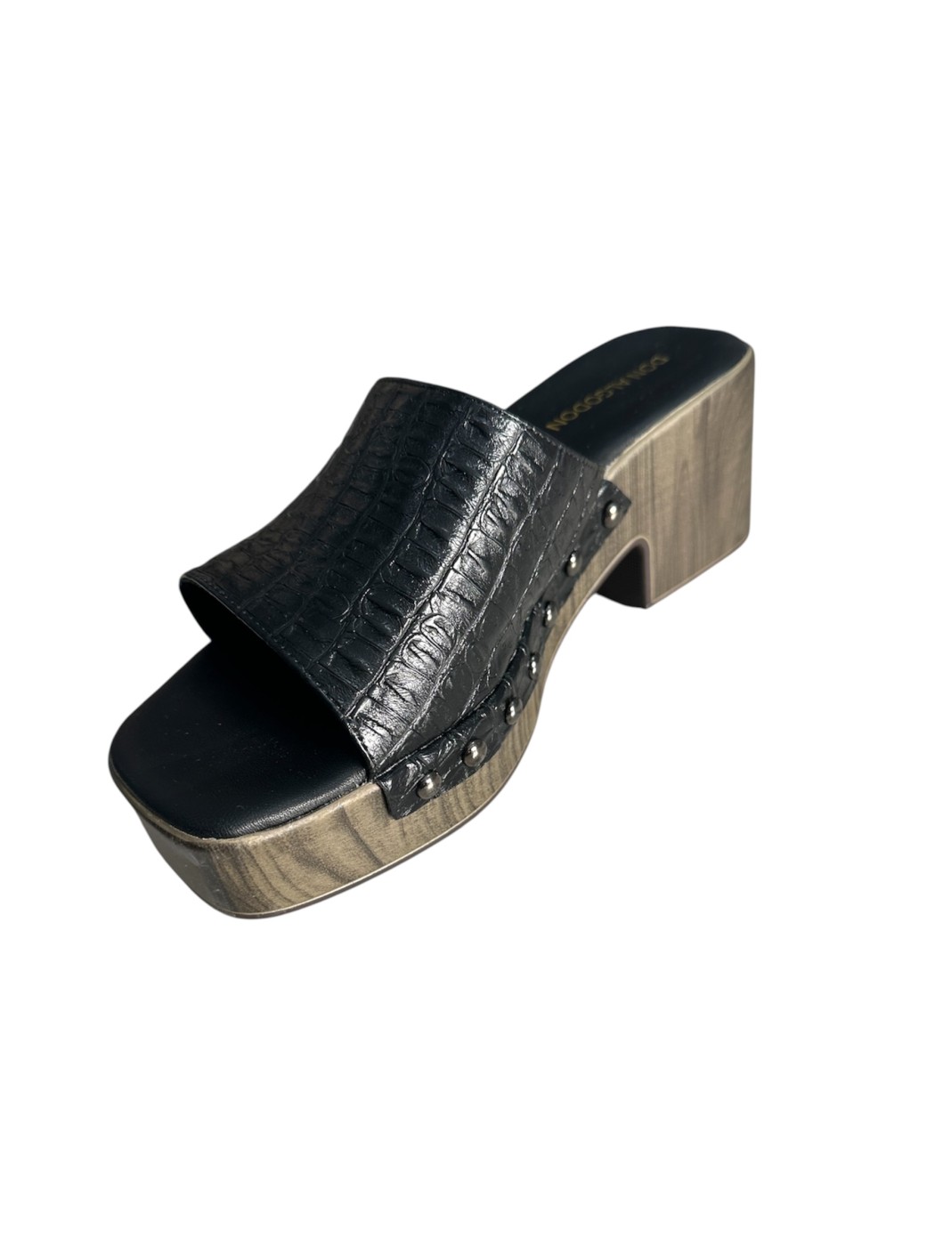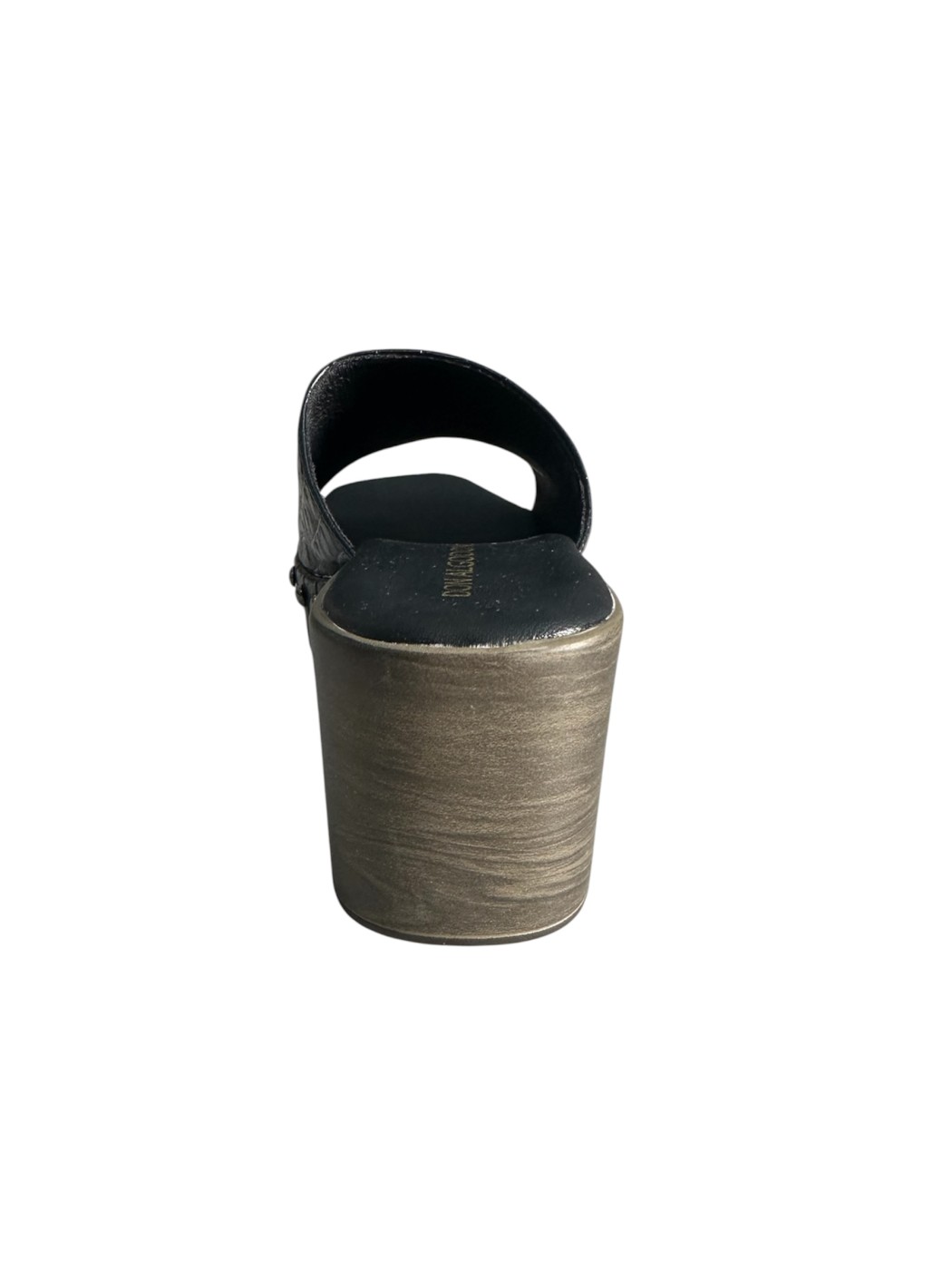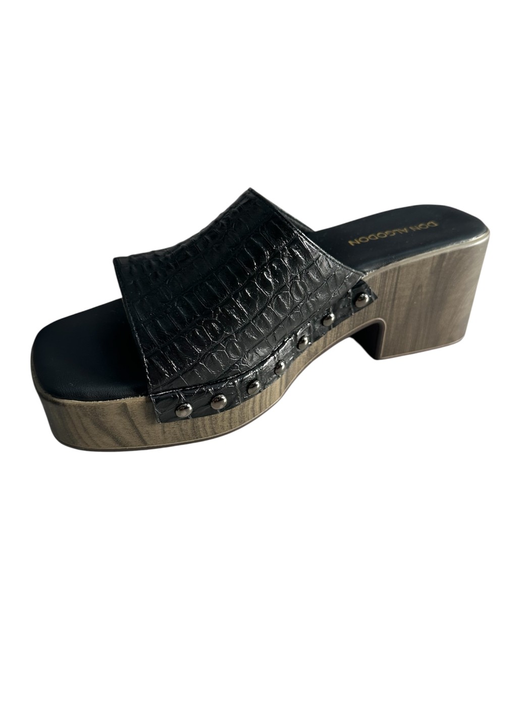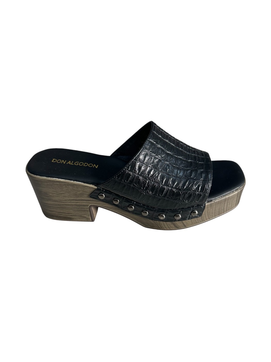 Trajes de Flamenca Mantones de Flamenca Pendientes de Flamenca Flores de Flamenca Broches de Flamenca Peinetas FlamencasSandalia Lolita Don Algodón. Esta sandalia es un modelo de plataforma tipo cuña que destaca por su pala ancha con textura de efecto cocodrilo y una base con acabado de efecto madera. Un detalle distintivo son los remaches o tachuelas metálicos que decoran el contorno donde se une la pala con la suela.